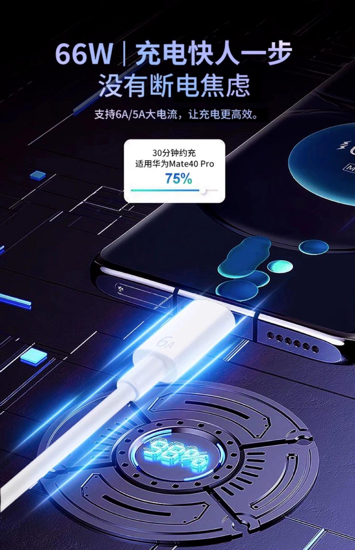 Cargador de Carga Superrápida de 120W Adecuado para Cargador Huawei de 66W Cabezal de Carga Cable de Datos para Carga Rápida de Teléfono Móvil Venta al por Mayor