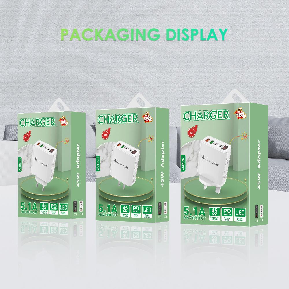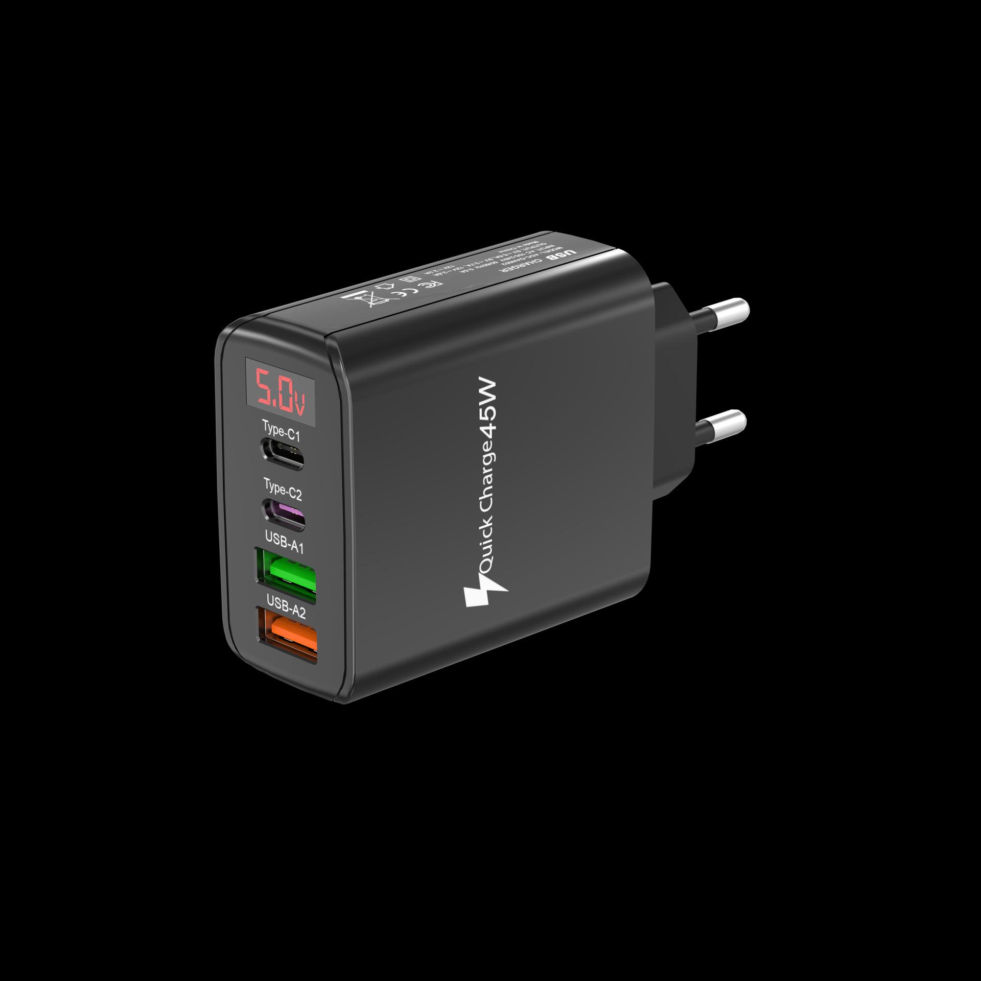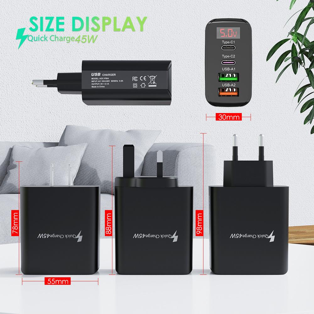 Compra Cargador de Teléfono Móvil PD45W con Pantalla Digital Tipo C Estándar Europeo 5V3A Cabezal de Carga Multi-Puerto USB Cargador con Pantalla Digital Carga Rápida al por mayor en Joom.pro