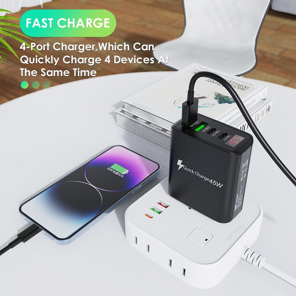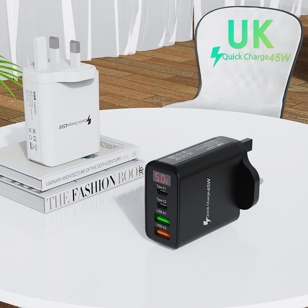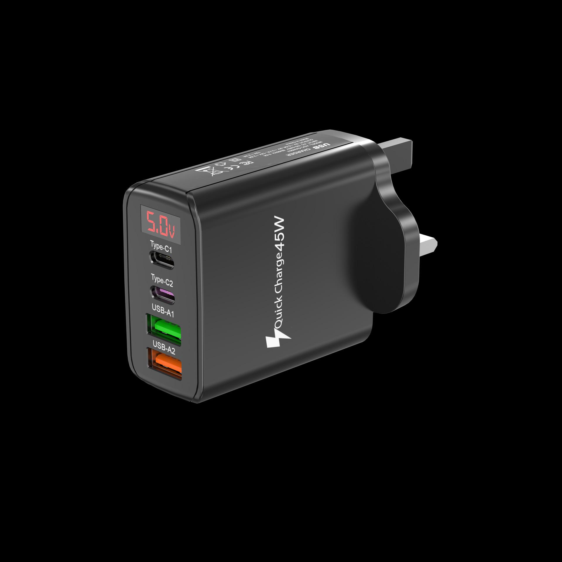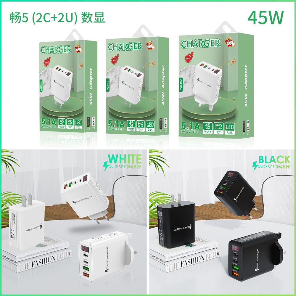 Compra Cargador de Teléfono Móvil PD45W con Pantalla Digital Tipo C Estándar Europeo 5V3A Cabezal de Carga Multi-Puerto USB Cargador con Pantalla Digital Carga Rápida al por mayor en Joom.pro