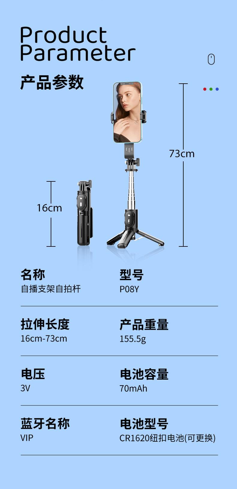 Nos centramos en el diseño y fabricación de palos para selfies, luces de relleno, soportes para transmisión en vivo y trípodes Bluetooth.