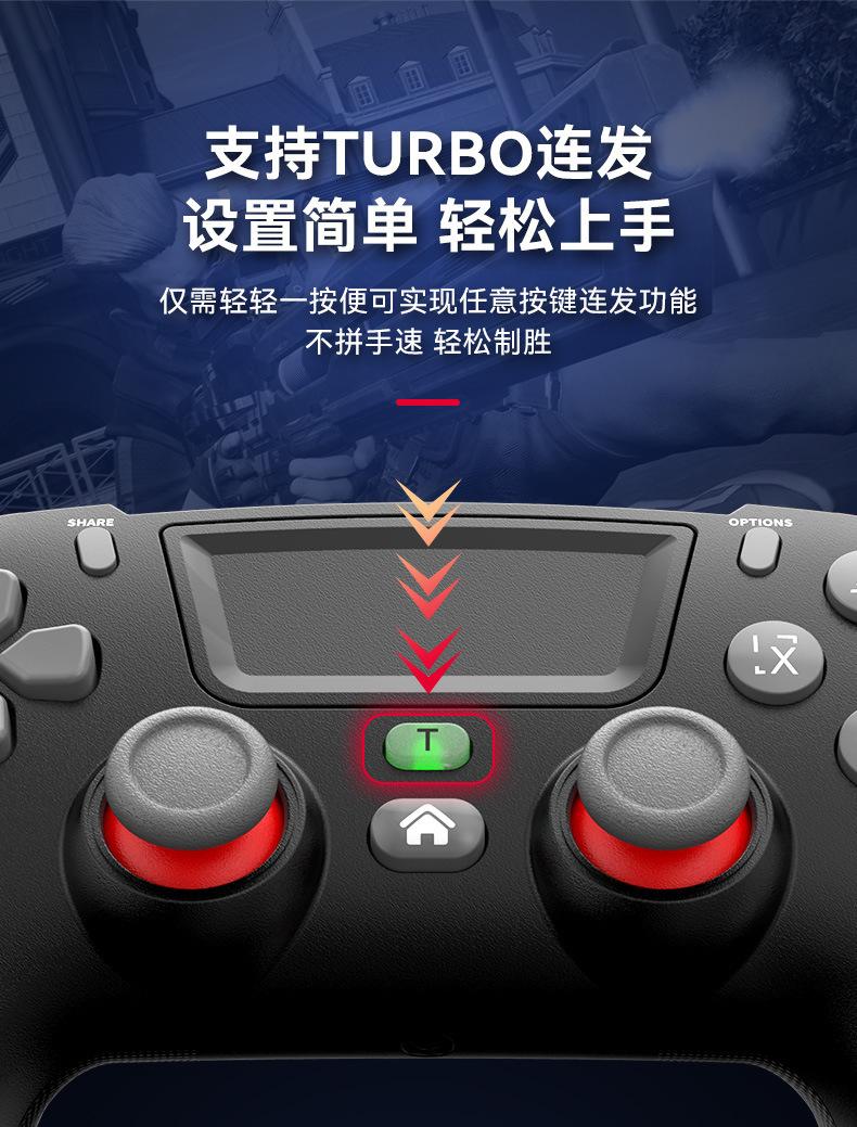 El control de vibración de doble motor para PS4 es estable y sin retrasos. El gatillo texturizado hace que el juego sea más emocionante. El control remoto es antideslizante y resistente al sudor, con una sensación táctil, y cuenta con control somatosensorial de seis ejes para una experiencia de juego inmersiva. Puedes jugar en PS4, iOS 13.14.15 (mfi), teléfonos Android (tabletas), ordenadores, portátiles, Switch y otras plataformas.