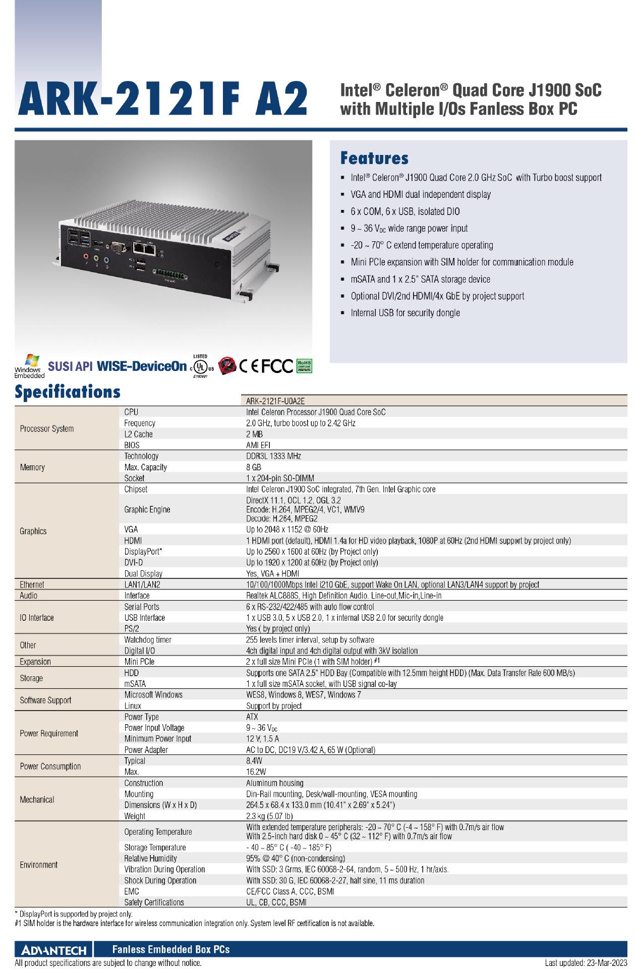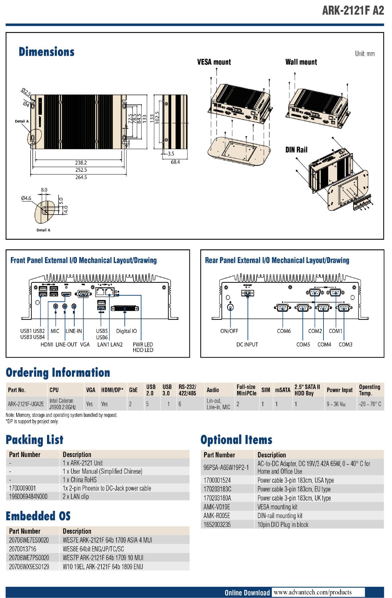 Compra Computadora industrial integrada sin ventilador Advantech ARK-2121F, computadora industrial con puerto de red dual, host de computadora industrial al por mayor en Joom.pro
