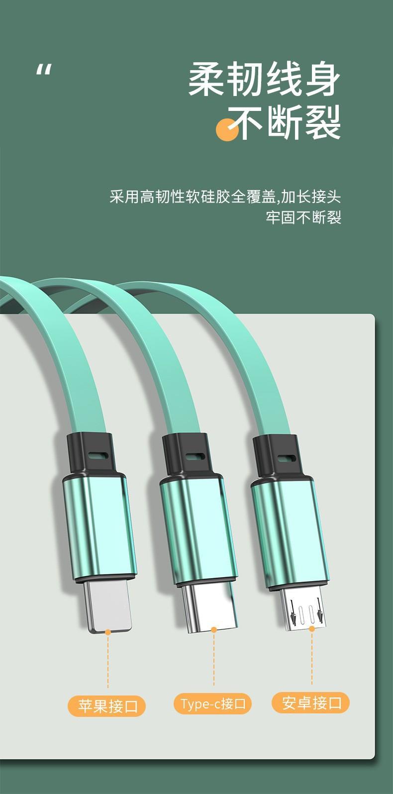 Carga rápida de teléfono móvil de uno a tres regalo cable de carga micro tipo c iphone para Apple Android