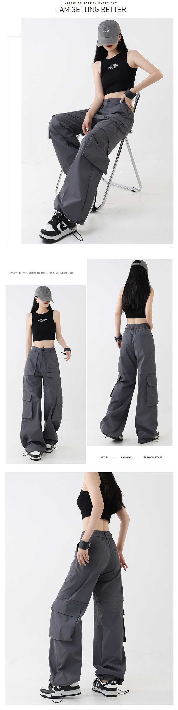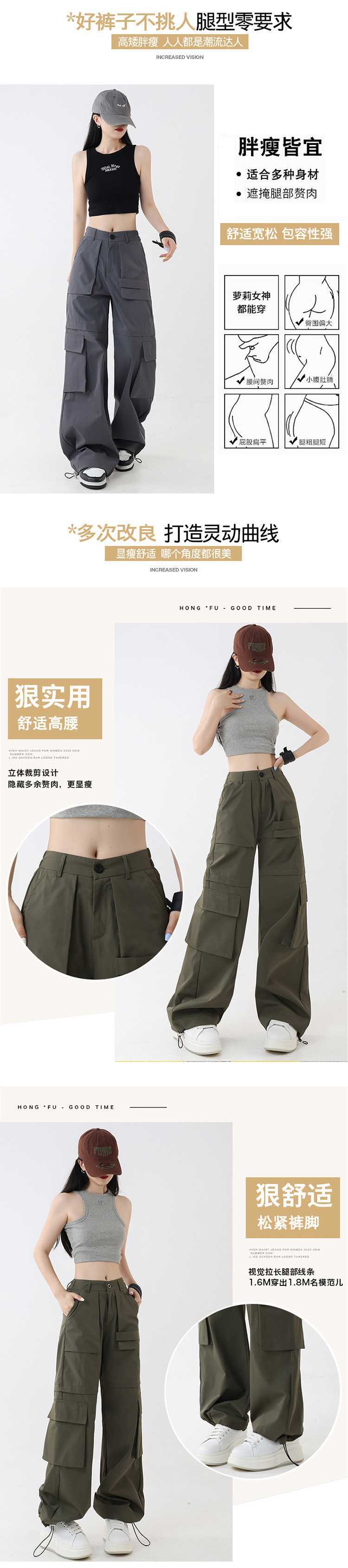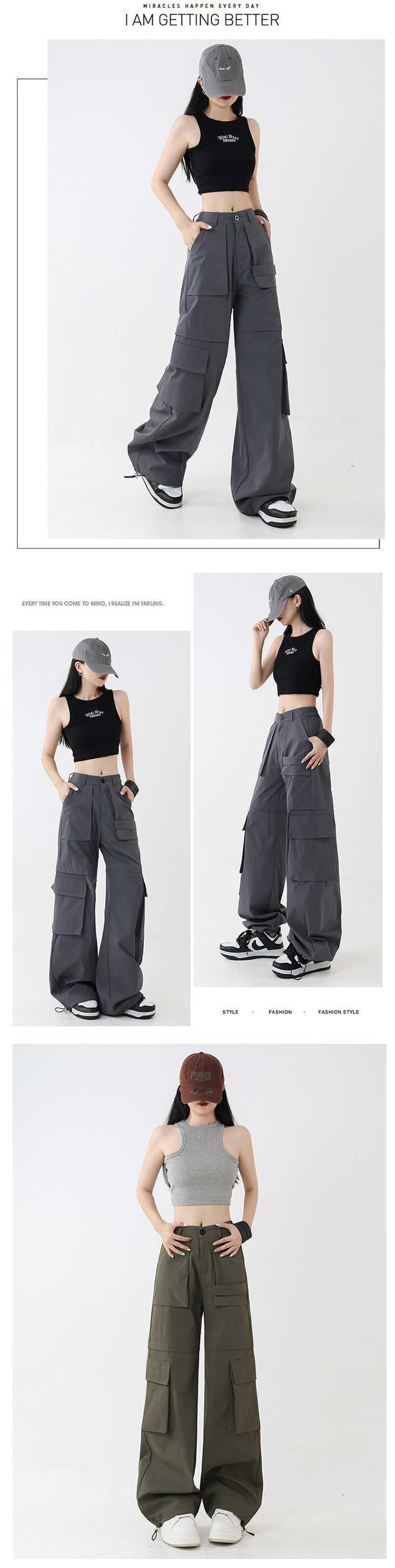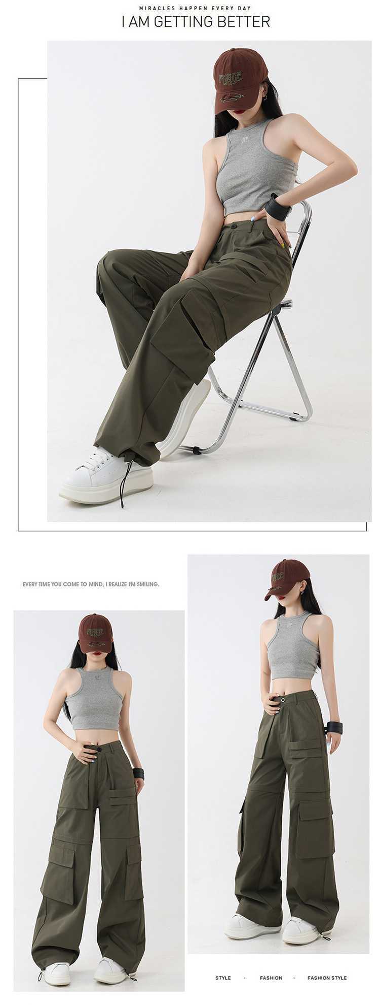 Pantalones casuales de otoño con diseño de cintura alta y adelgazamiento de piernas, pantalones anchos y sueltos.