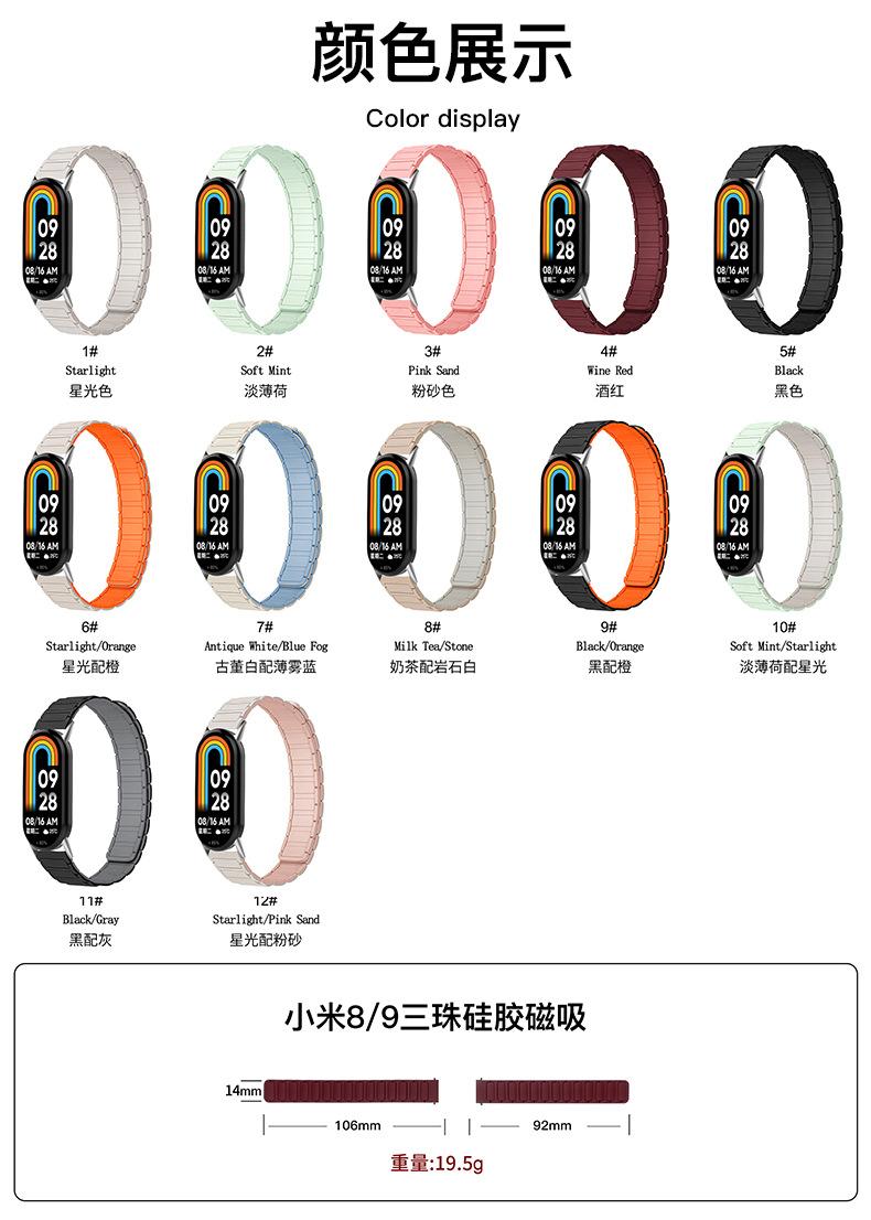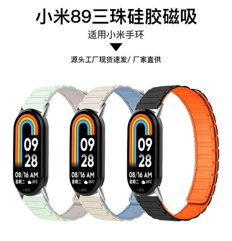 Adecuado para Xiaomi Mi Band 10/9/8 Correa Cuarta Generación Tres Cuentas Pulsera de Repuesto Silicona Magnética Correa Xiaomi Mi Band