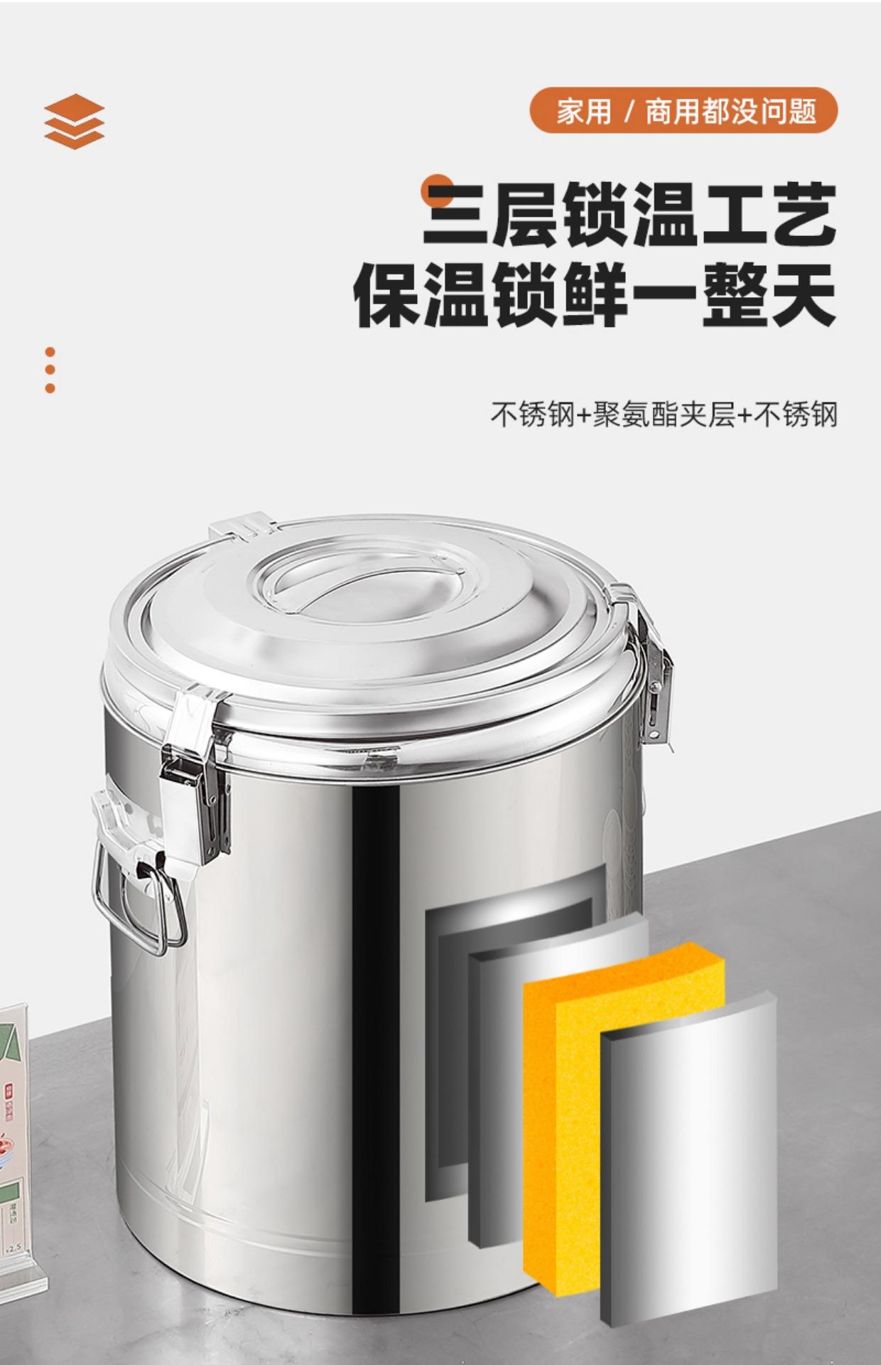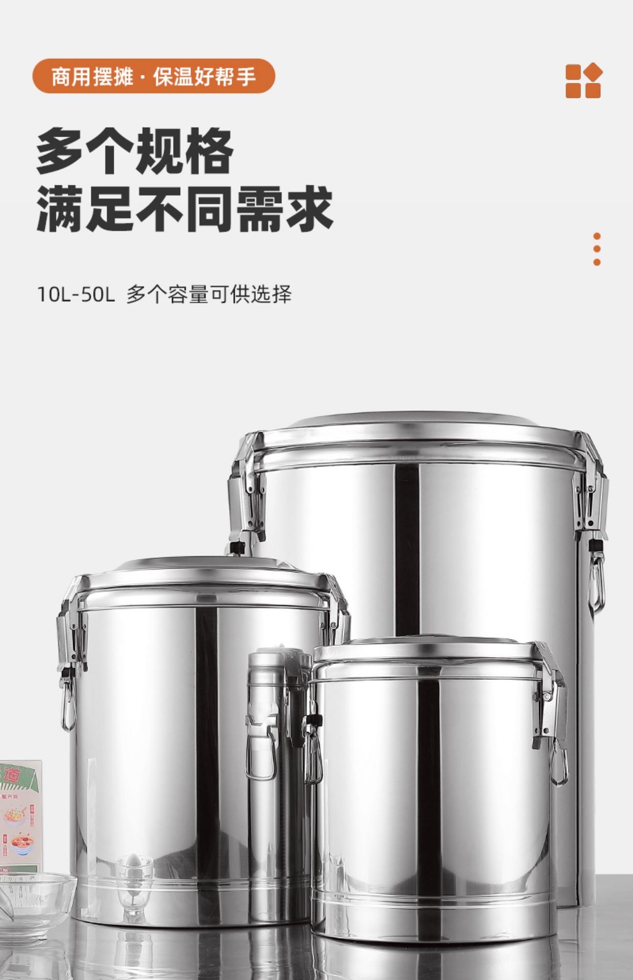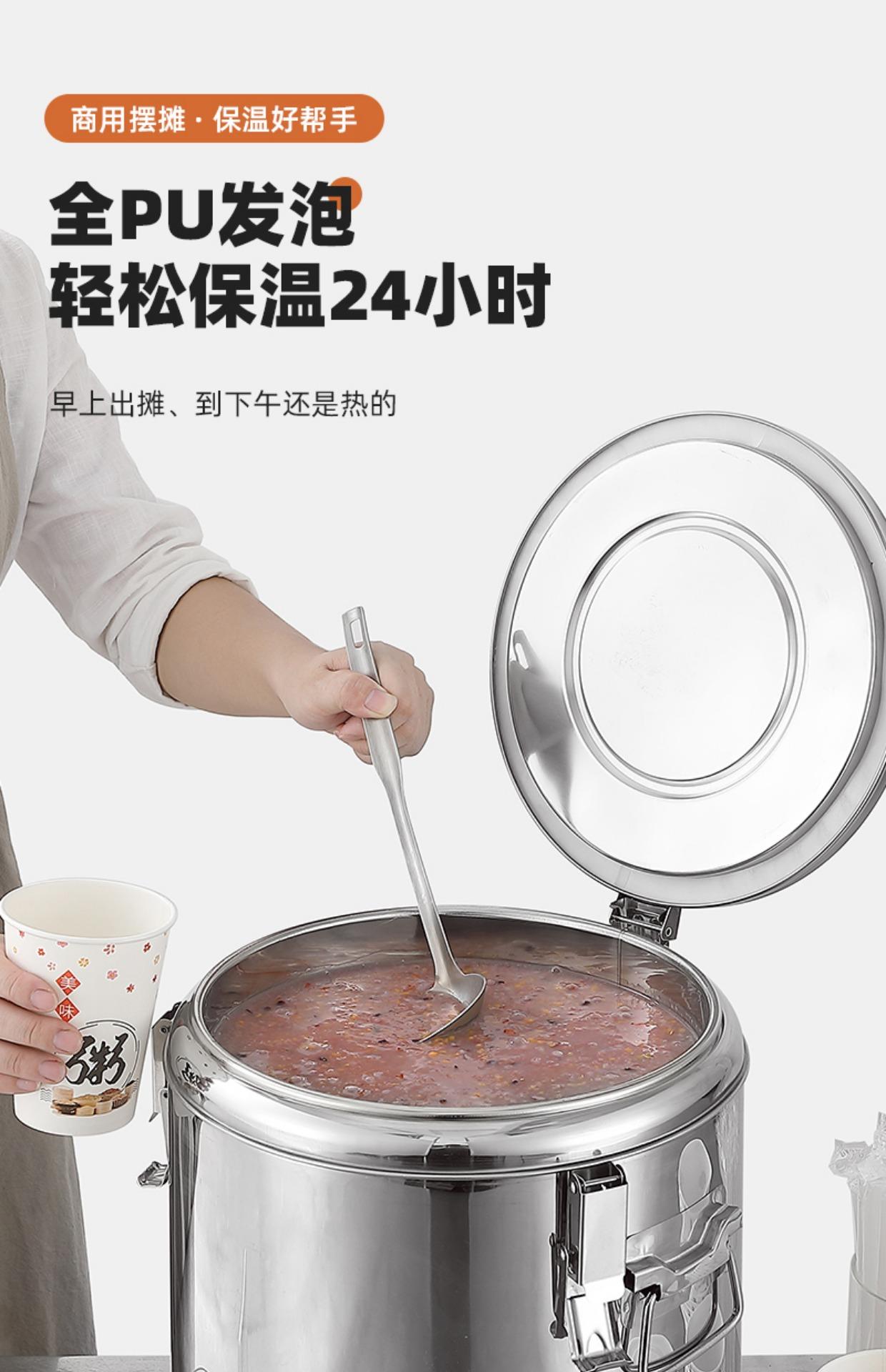 Cubo aislado al por mayor cantimplora de gran capacidad comercial cubo para arroz para exteriores grado alimenticio acero inoxidable súper largo aislado cubo para sopa cubo para avena