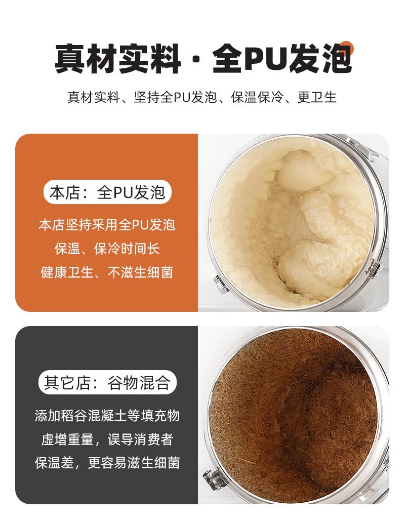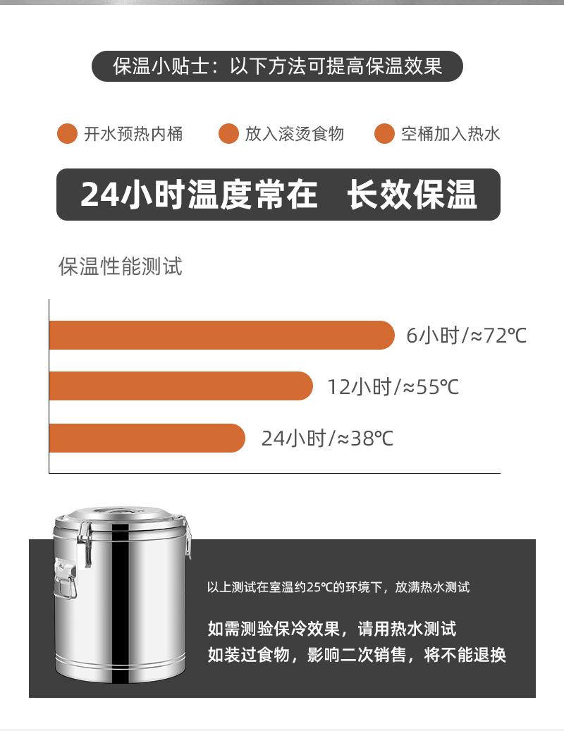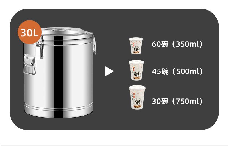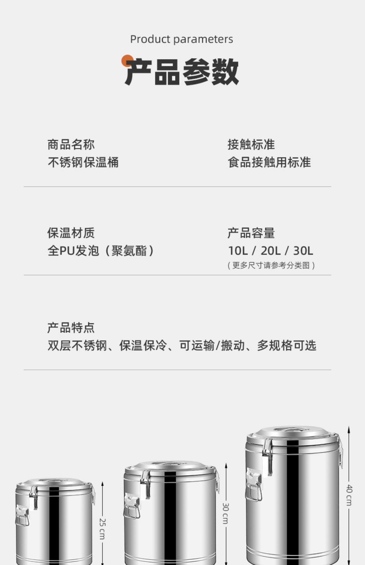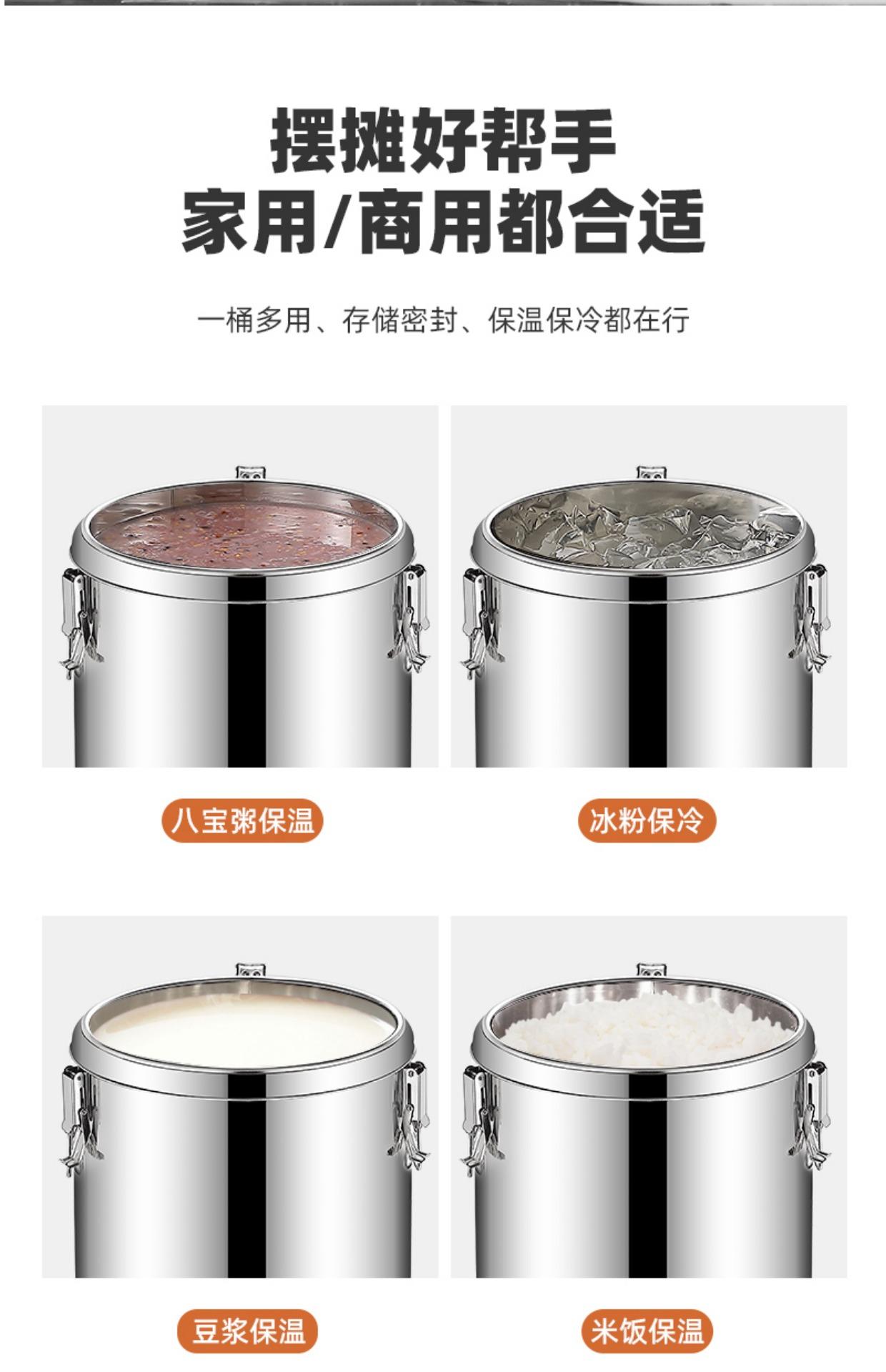 Cubo aislado al por mayor cantimplora de gran capacidad comercial cubo para arroz para exteriores grado alimenticio acero inoxidable súper largo aislado cubo para sopa cubo para avena