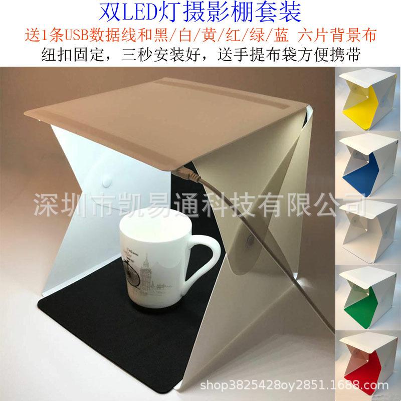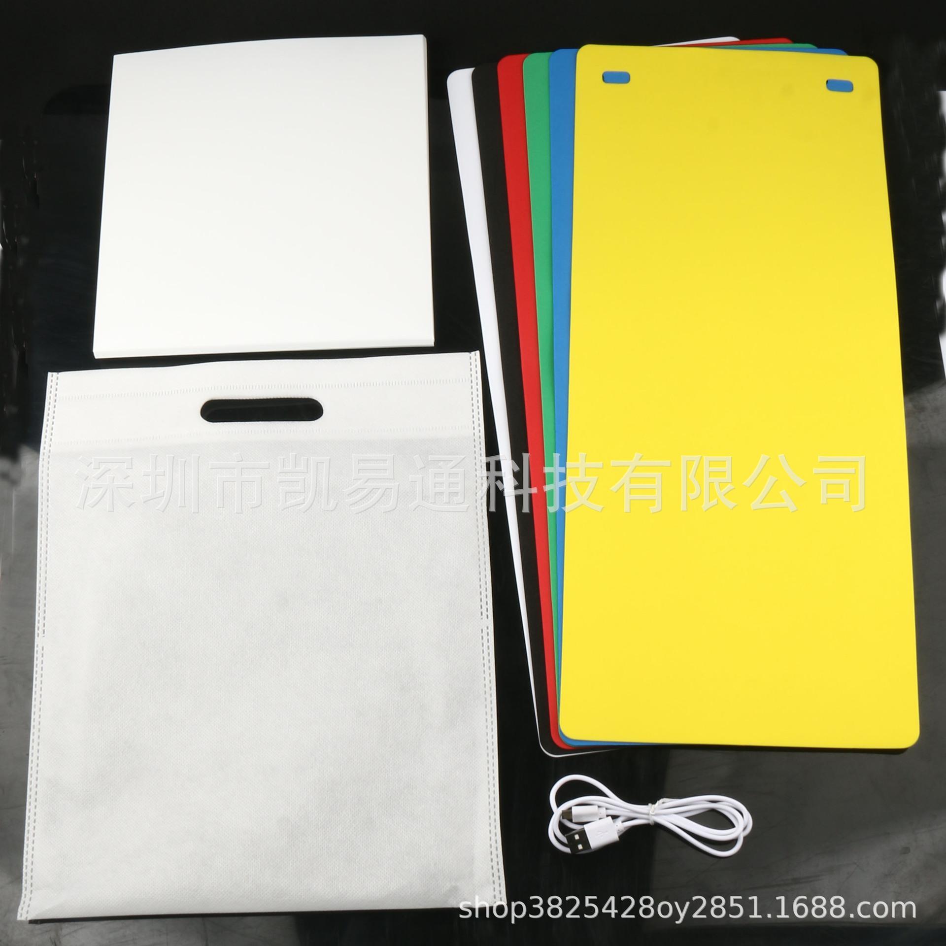 Detalles del producto: 1 estudio fotográfico + 6 colores de tela de fondo EVA + 1 cable USB + 1 bolsa de embalaje
