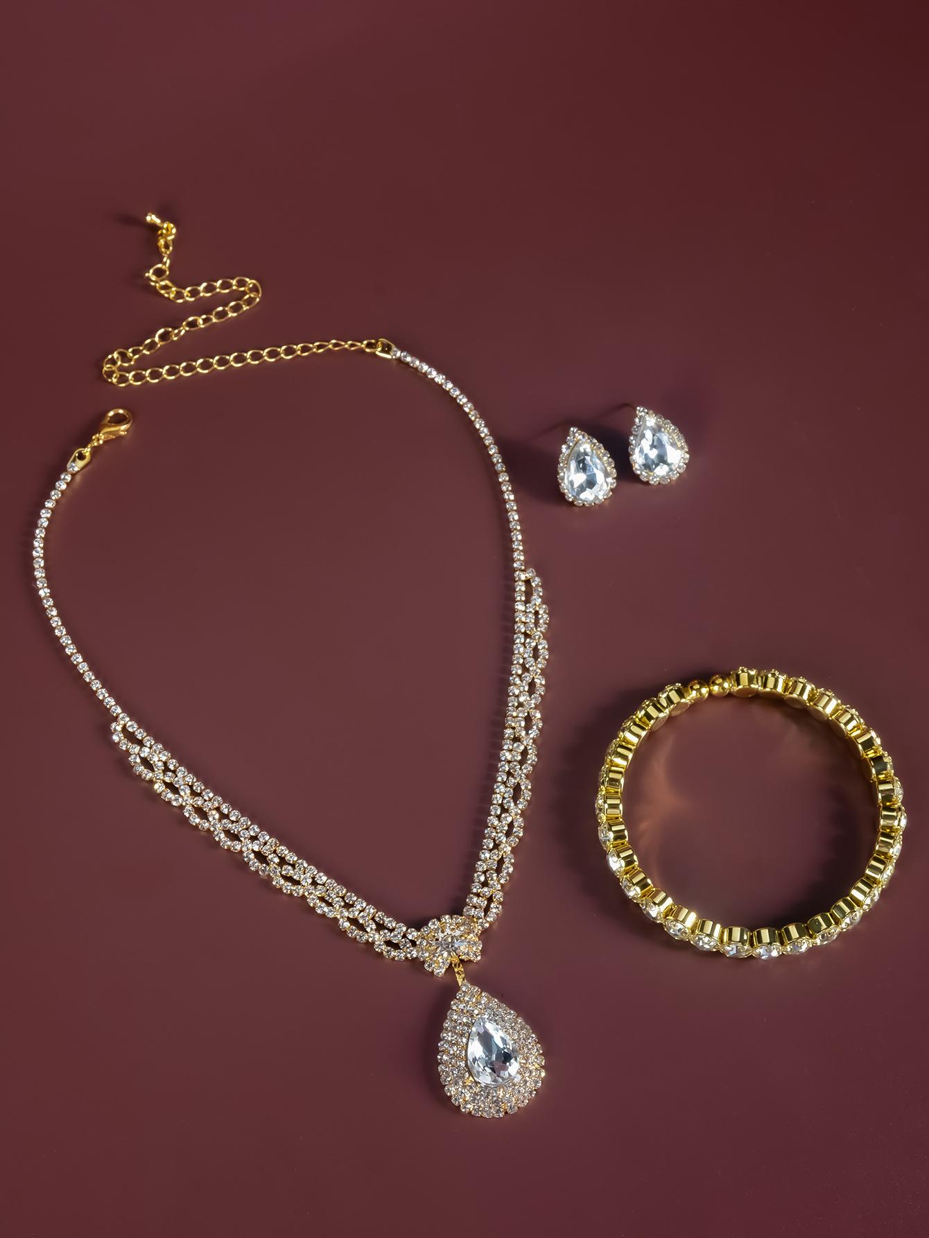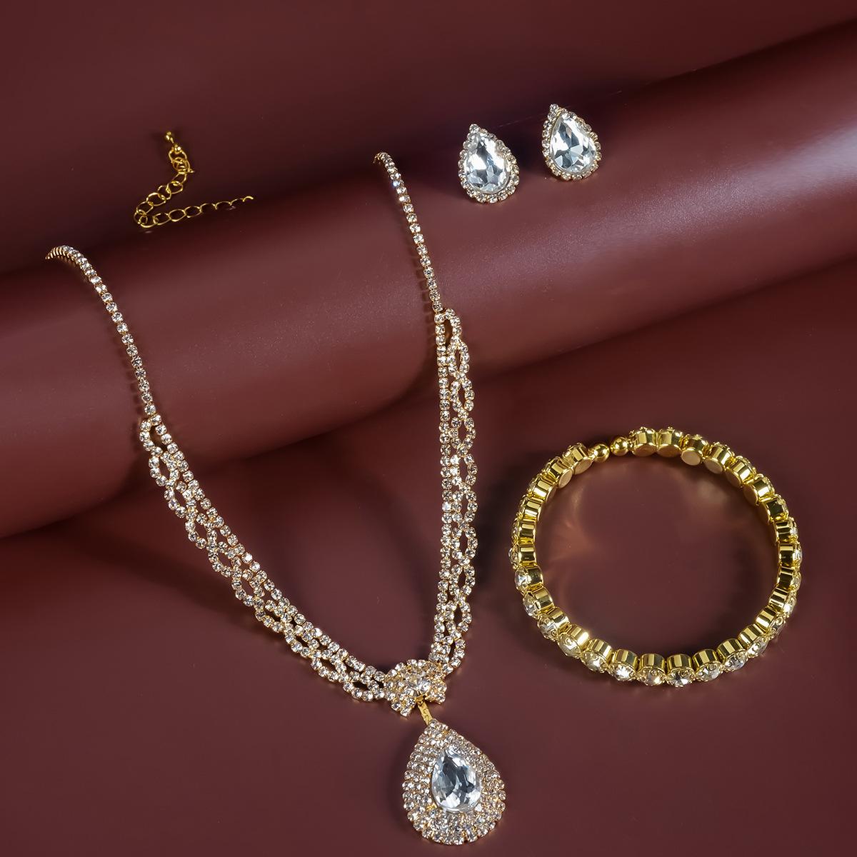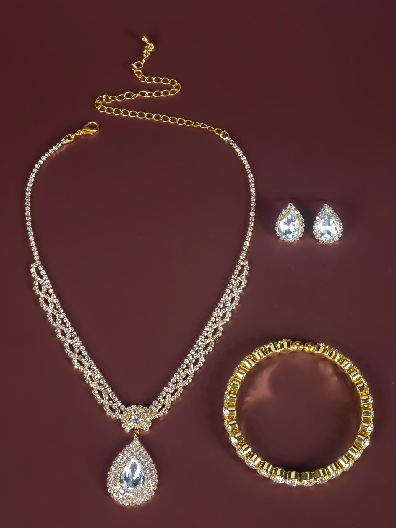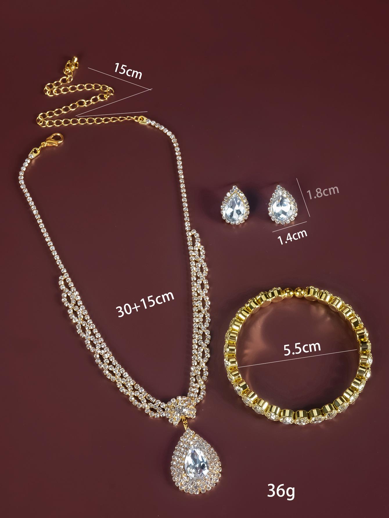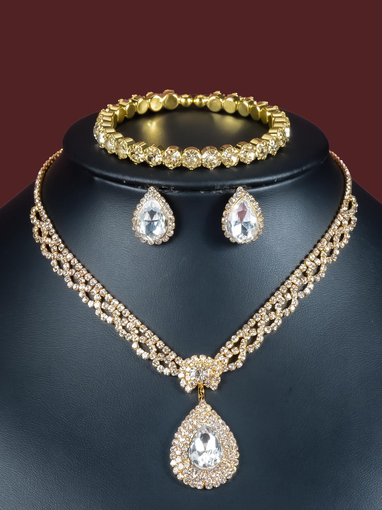 | Collar de diamantes de imitación de oro de 18 quilates con forma de media luna para novias europeas y americanas, accesorios de boda para damas, suministro de joyería transfronteriza al por mayor | Nuevo conjunto de tres piezas de collar y pulsera con diamantes de imitación, joyería popular de Oriente Medio, accesorios de boda a la moda que combinan con todo. | Conjunto de collar y pendientes de novia europeos y americanos, decoraciones para damas, accesorios de boda con diamantes negros a juego, transmisión en vivo | Nuevo conjunto de joyas de collar y pendientes exagerados para mujer, con todo tipo de combinaciones de oro y diamantes, fabricantes de accesorios de boda | |||