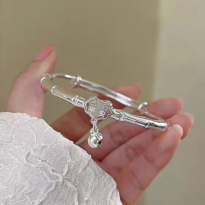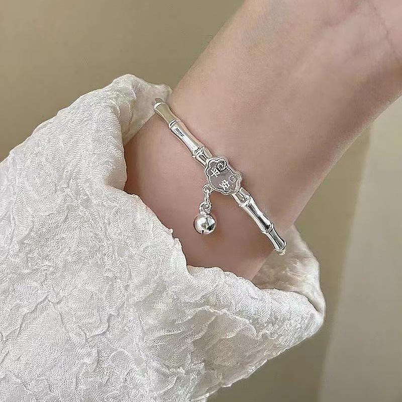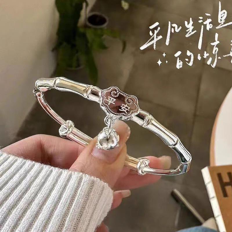 Nuevo trémolo en vivo bambú plateado periódico paz push-pull pulsera de plata esterlina para mujer pulsera sólida lisa con cierre de paz venta al por mayor