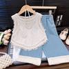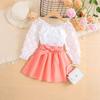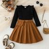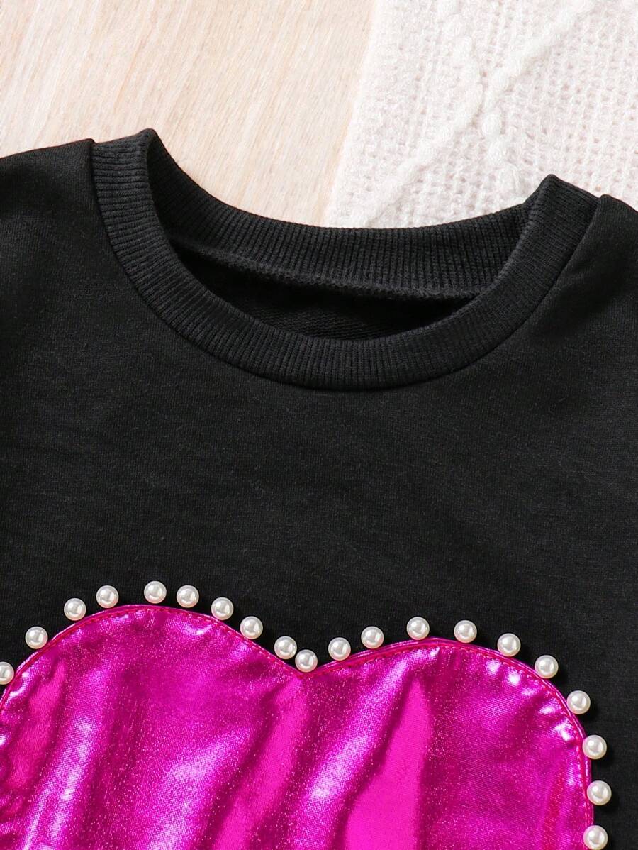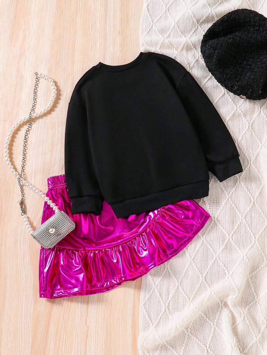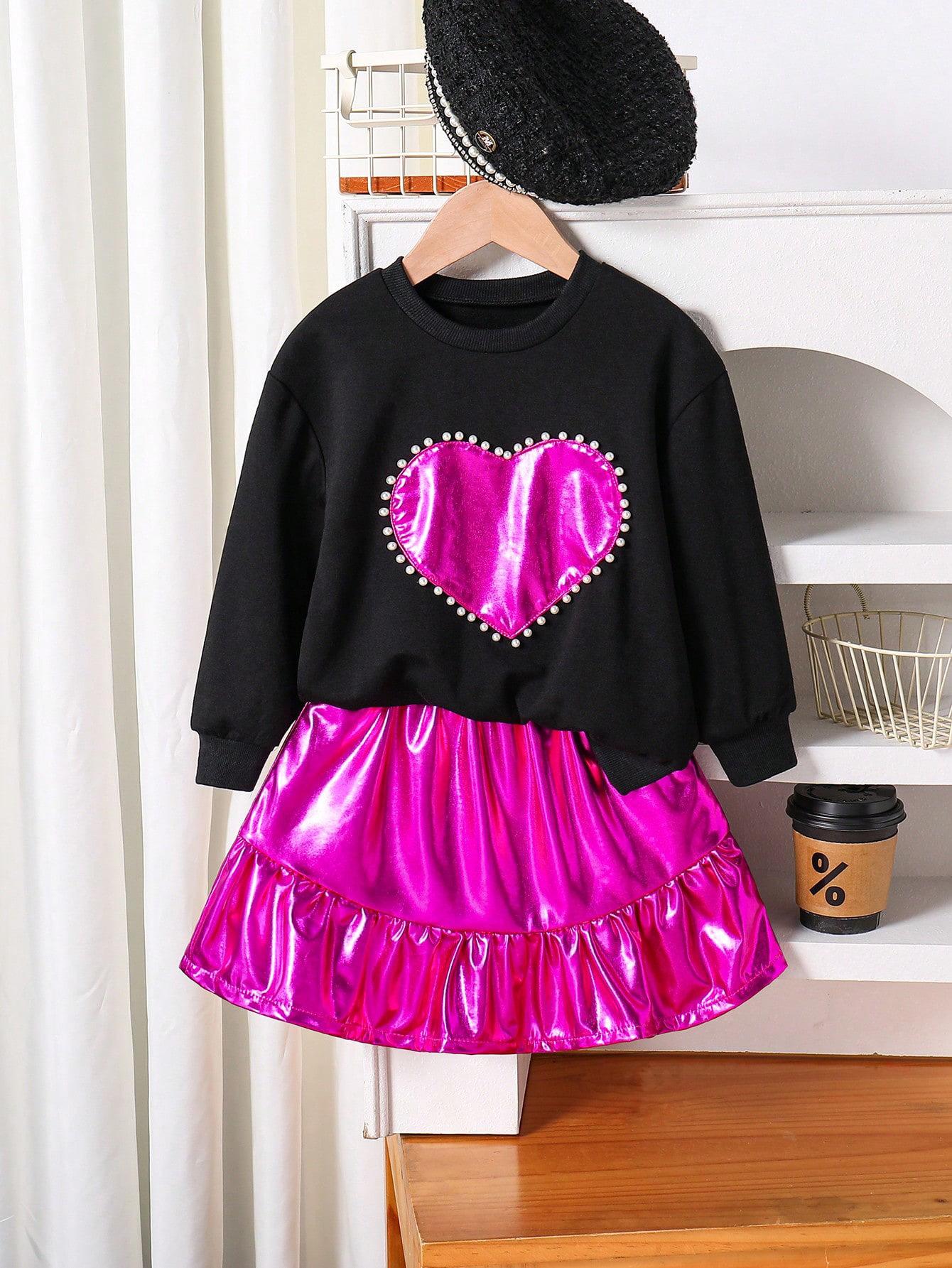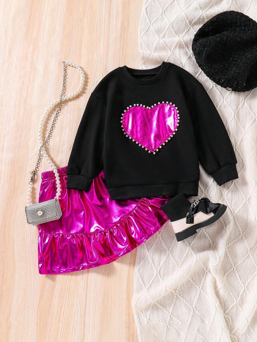 Conjunto de dos piezas de moda de otoño e invierno para niñas de Amazon, suéter con perlas y falda con lentejuelas