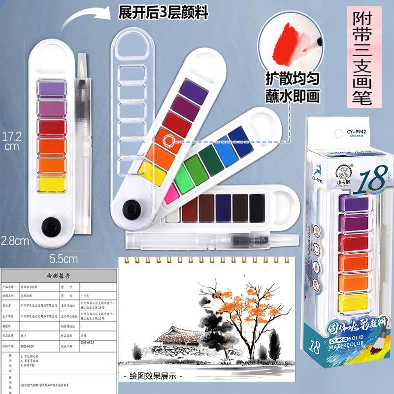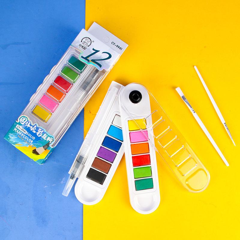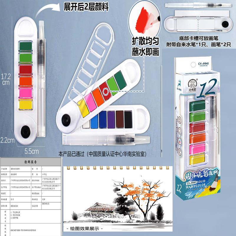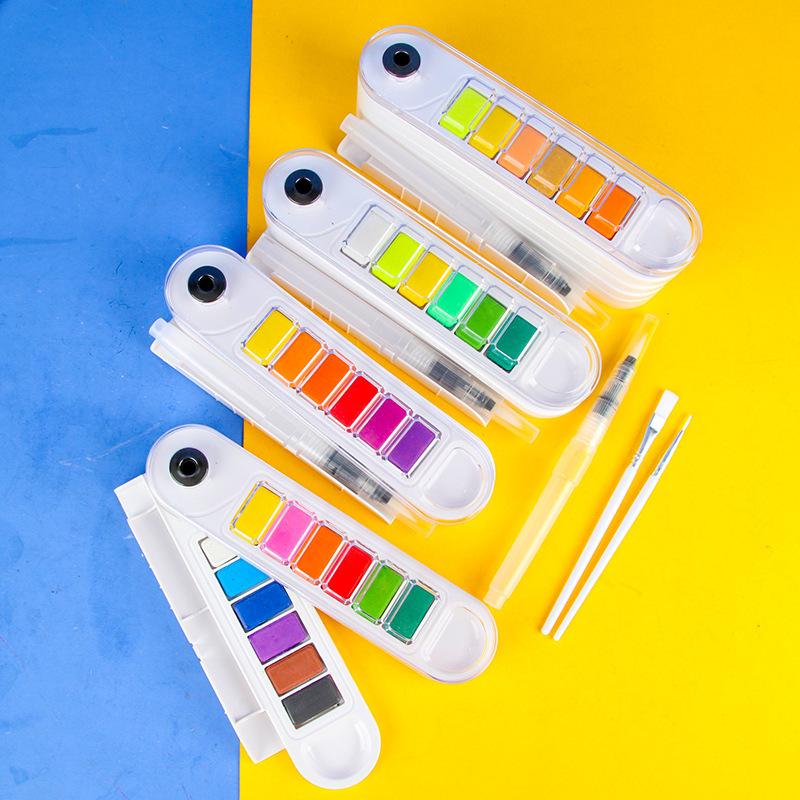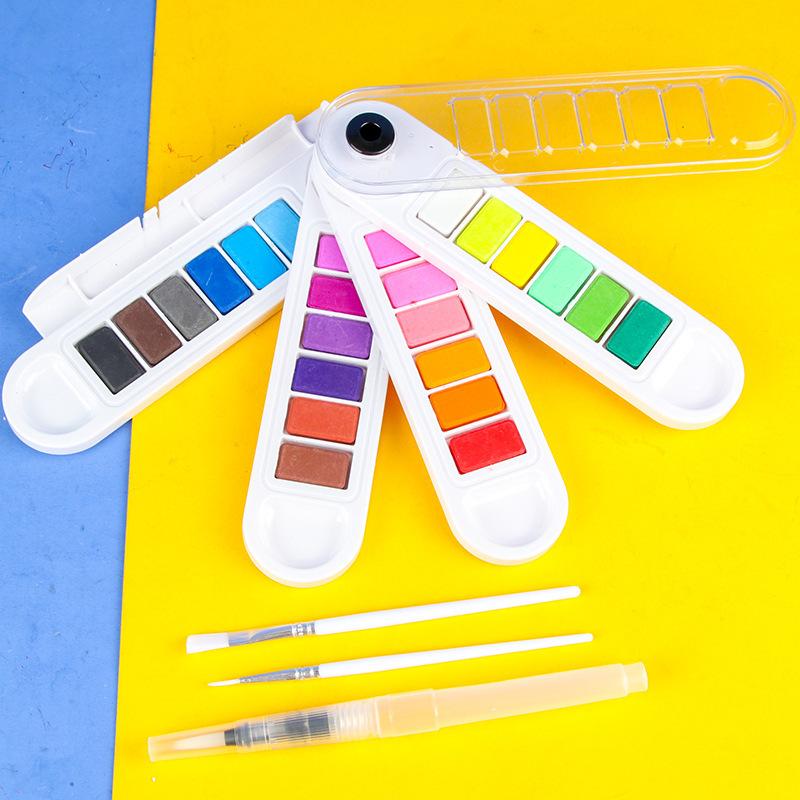 Juego de pintura de acuarela sólida en forma de abanico, gouache portátil para estudiantes, pintura de 24 colores, gouache para principiantes para rellenar colores artísticos, 12 colores