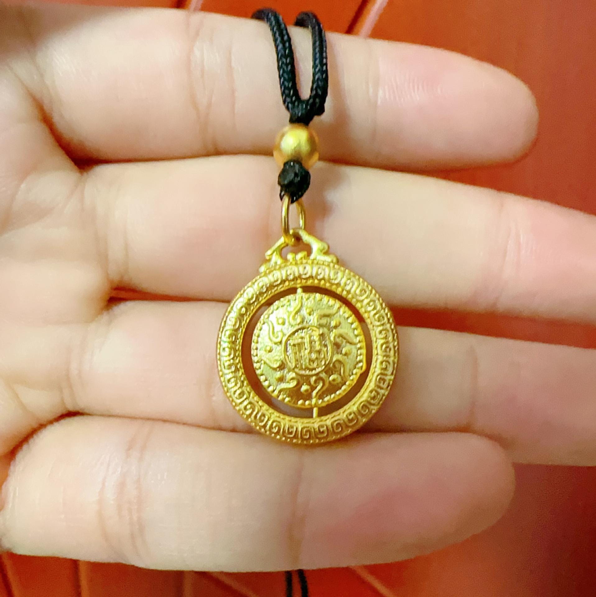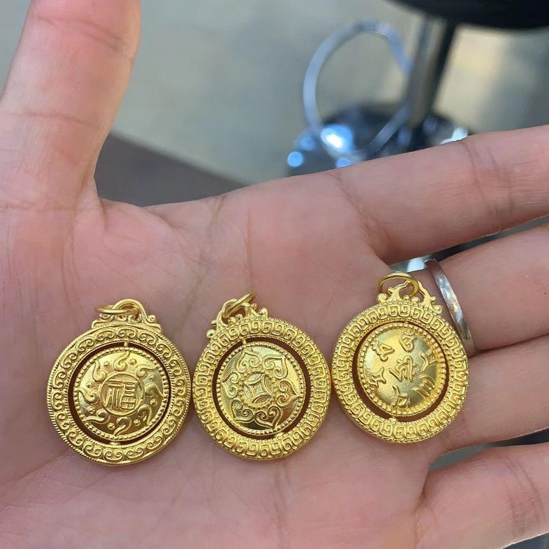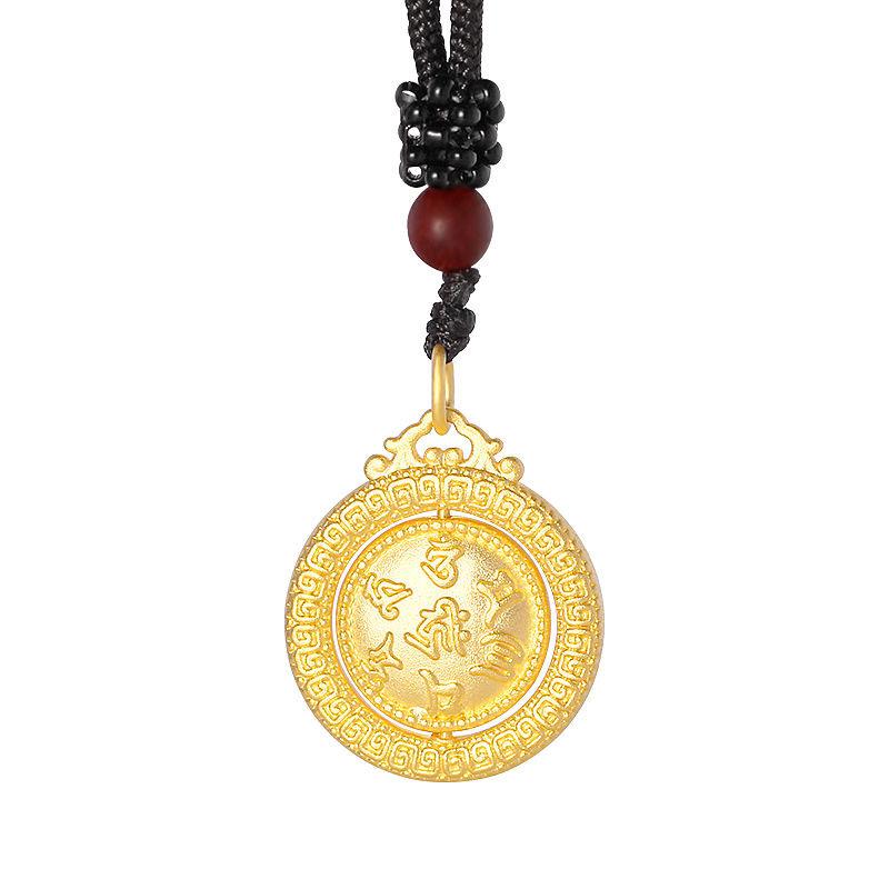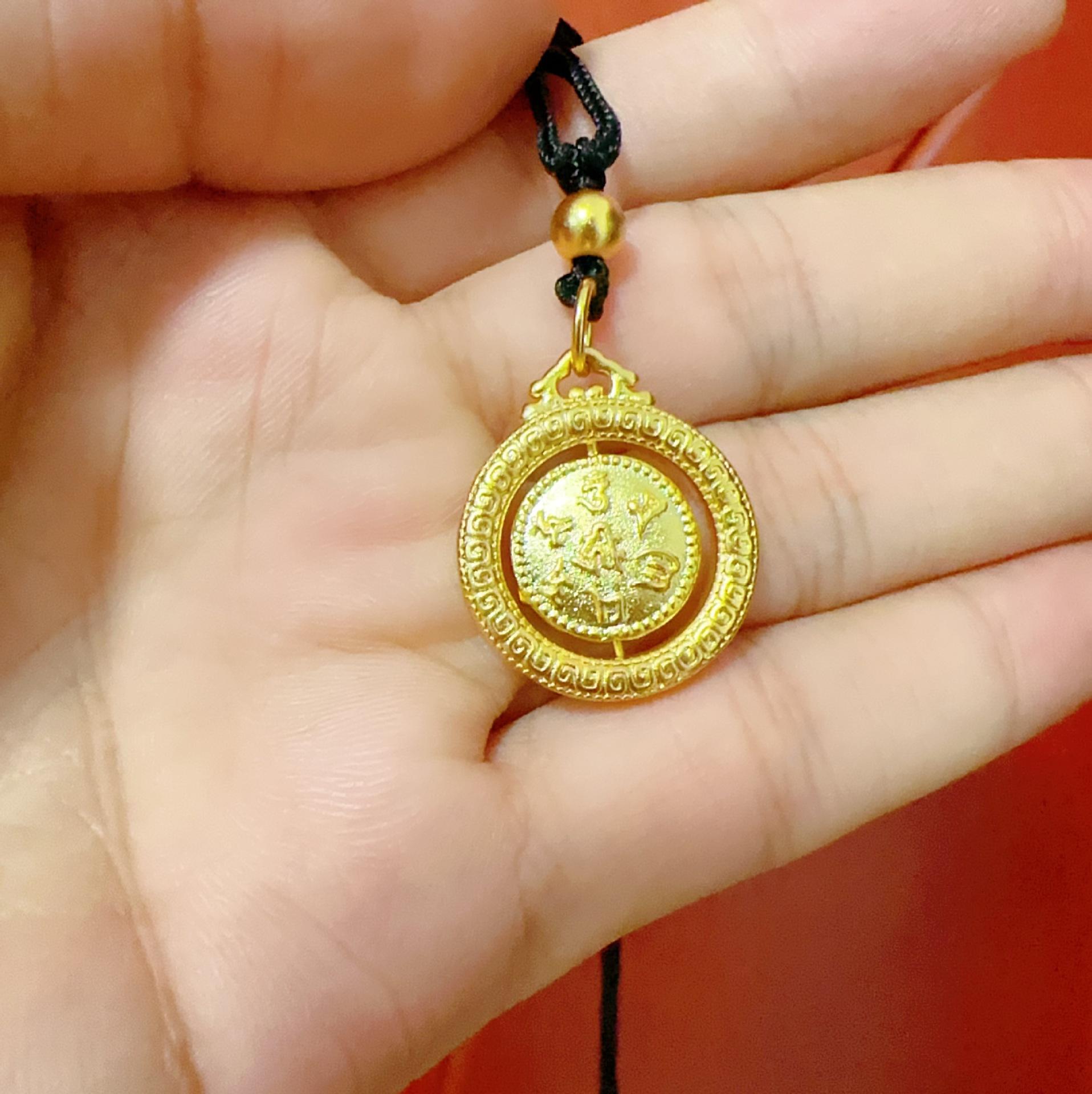 Colgante vietnamita con hebilla de seguridad de mantra de seis caracteres en oro arena que se puede girar con un método antiguo. Colgante de disco de herencia. Colgante con lema de seis caracteres.