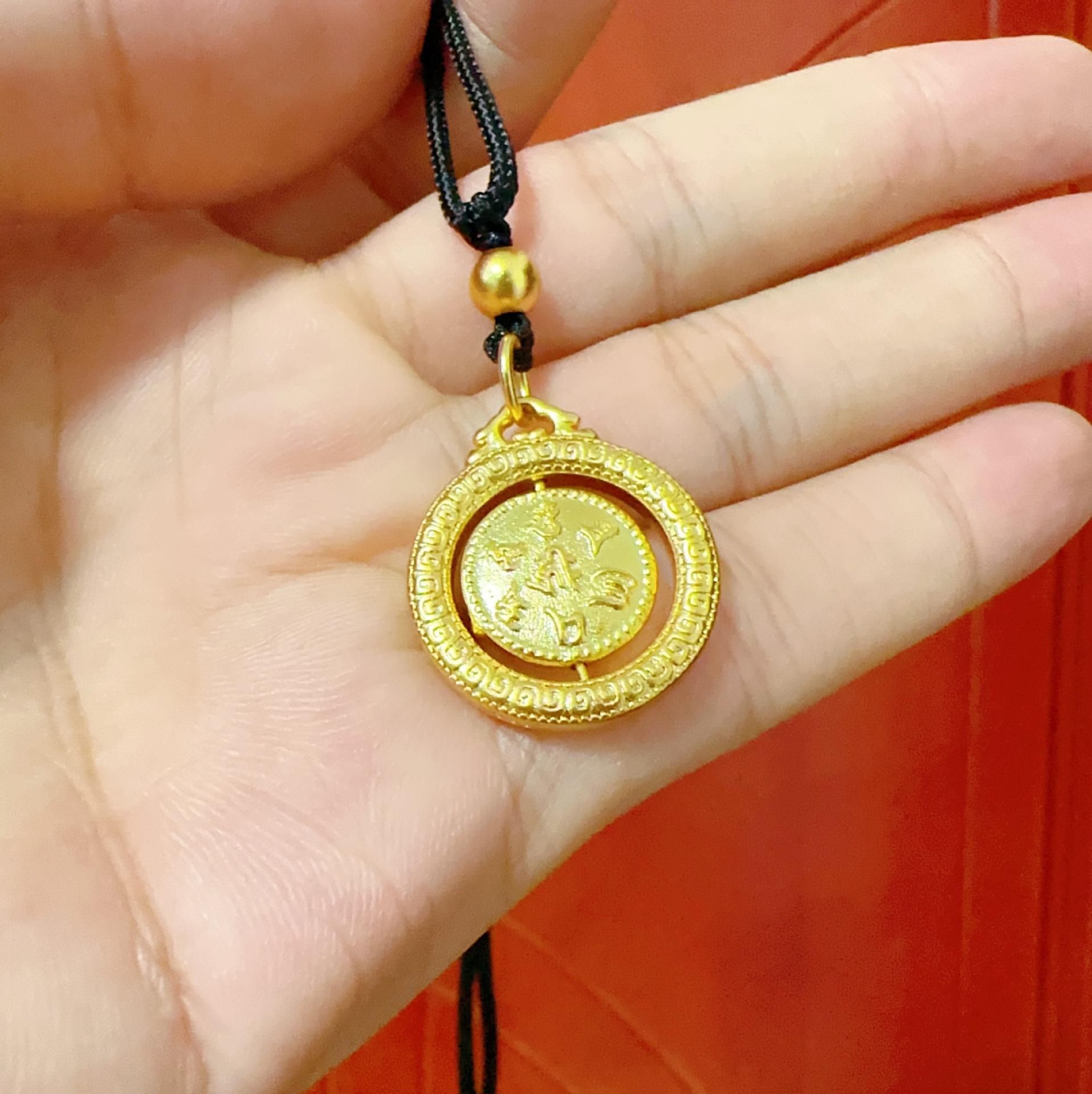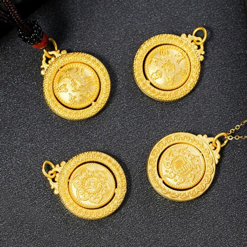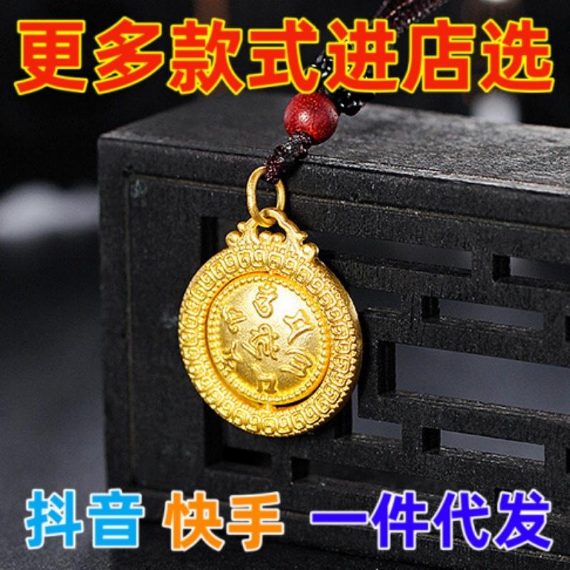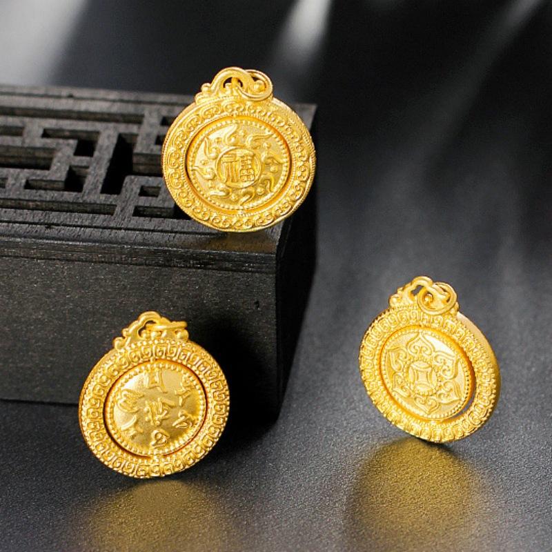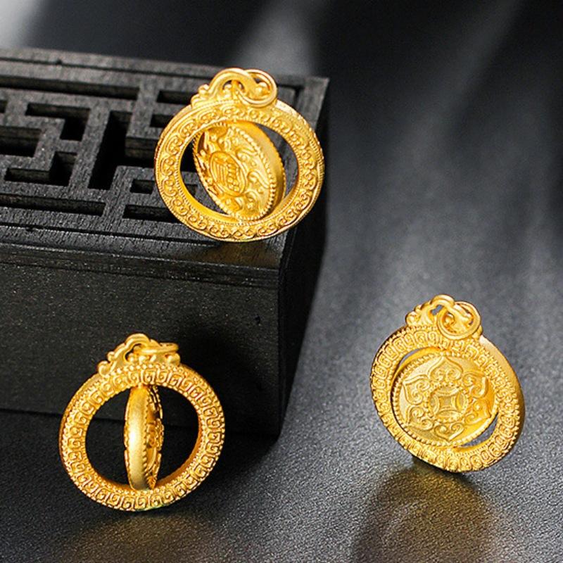 Colgante vietnamita con hebilla de seguridad de mantra de seis caracteres en oro arena que se puede girar con un método antiguo. Colgante de disco de herencia. Colgante con lema de seis caracteres.