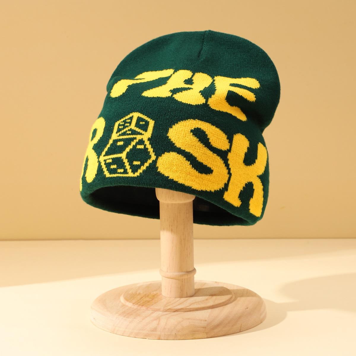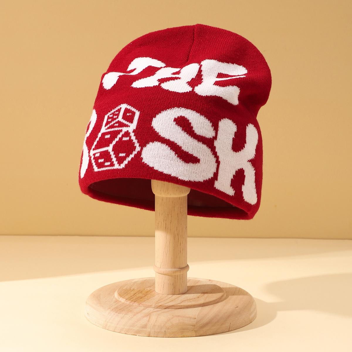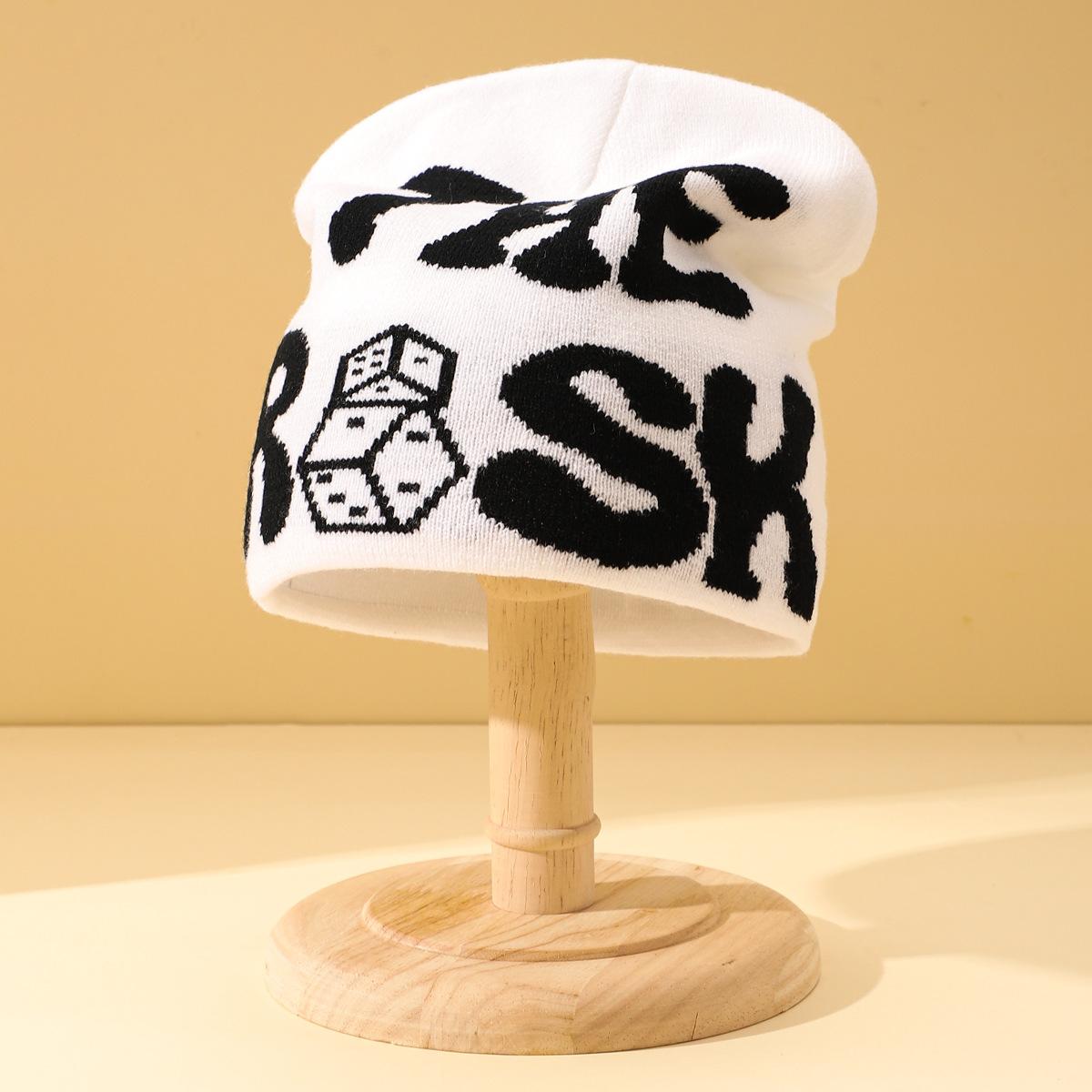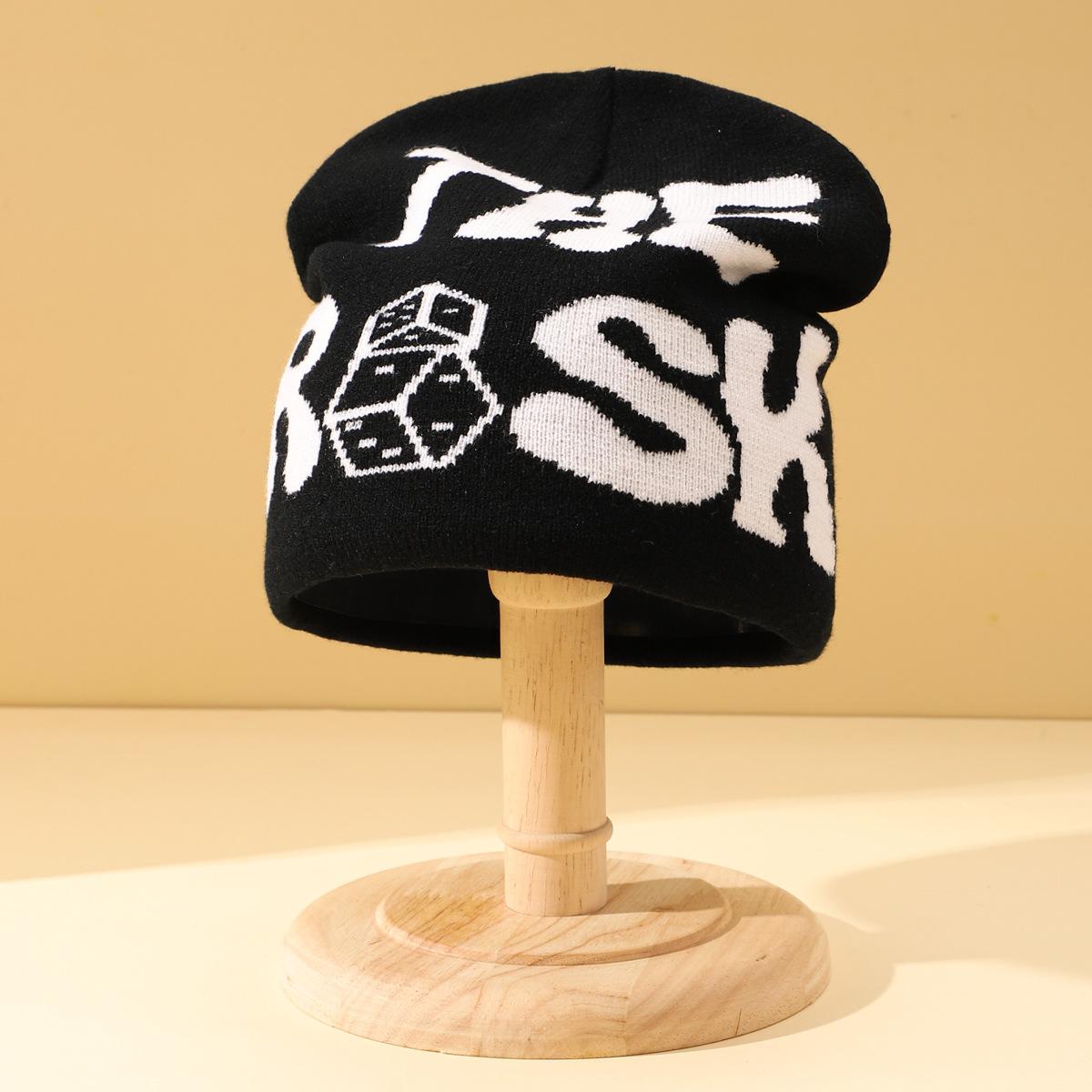 Gorro de Lana con Letras de Moda Estilo Coreano Otoño e Invierno a Prueba de Frío Cálido Gorro de Punto Elástico Versátil Gorro Jacquard Transfronterizo