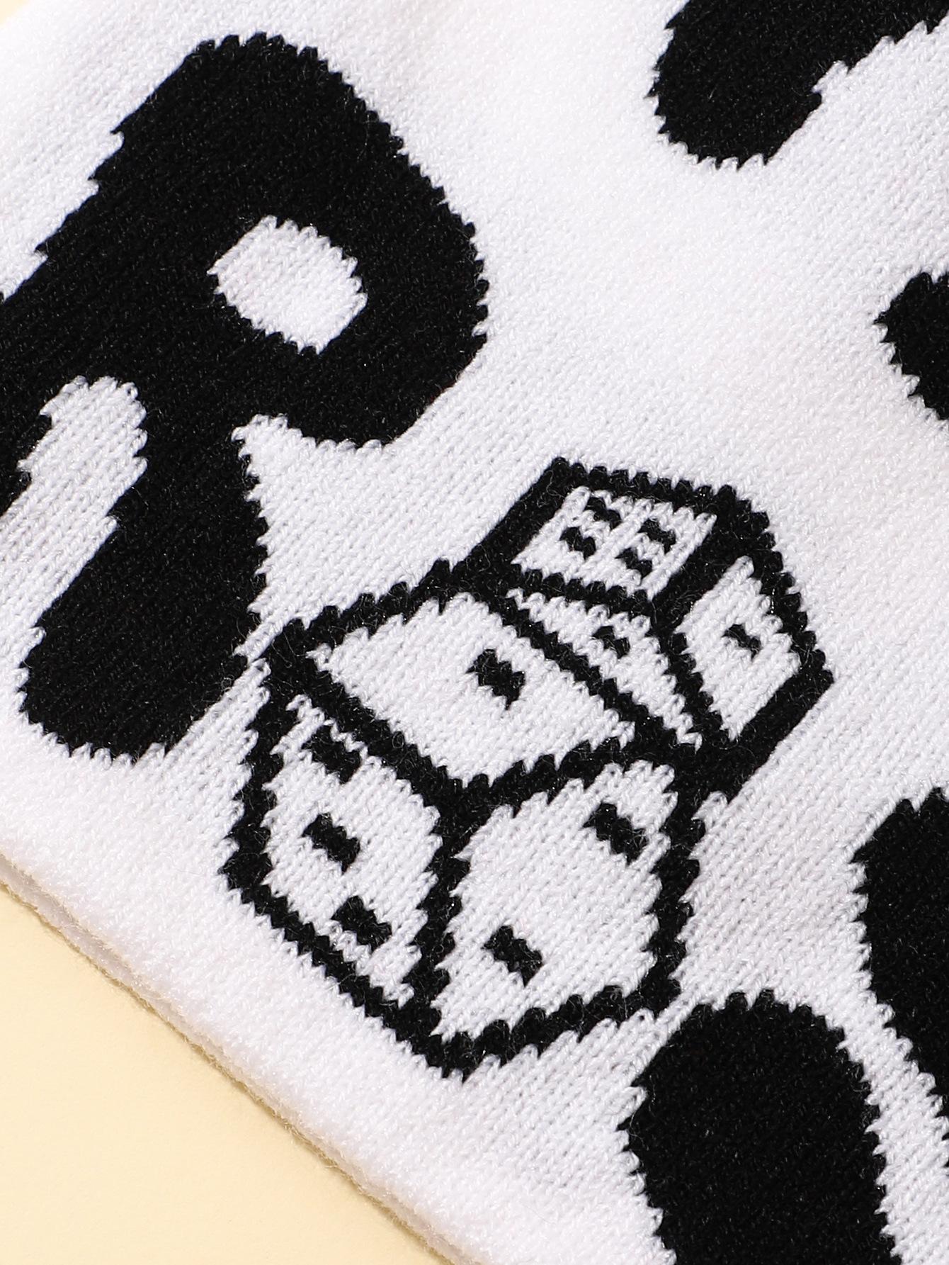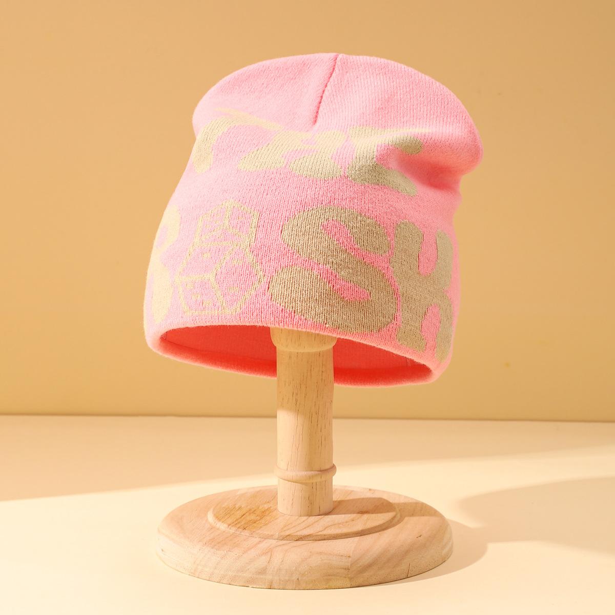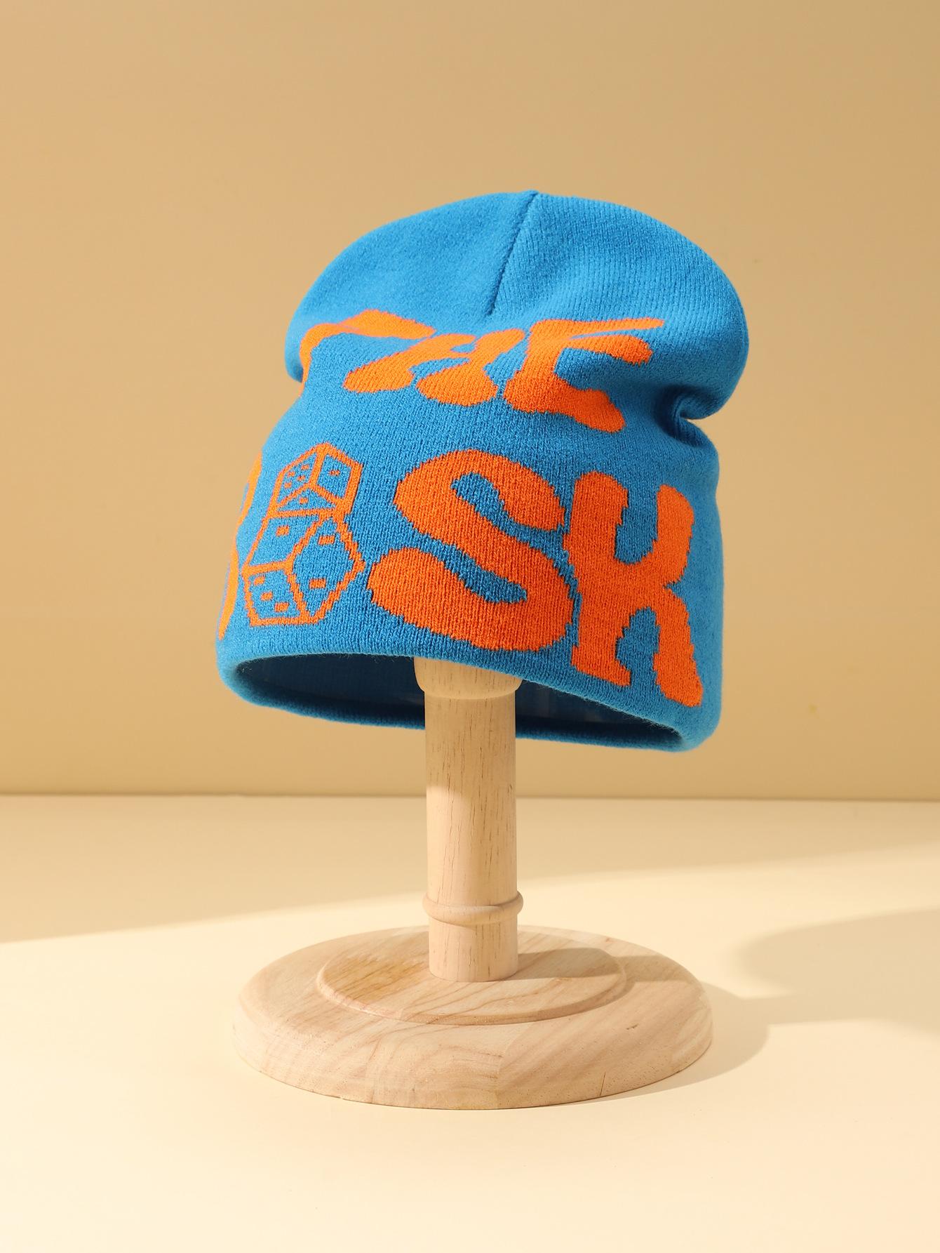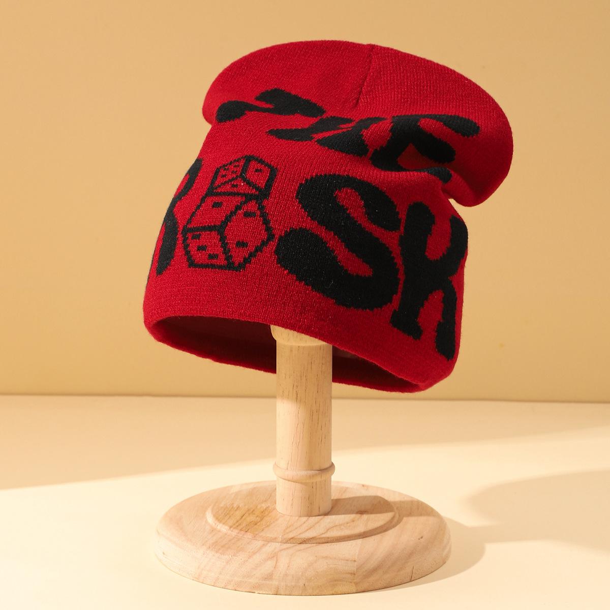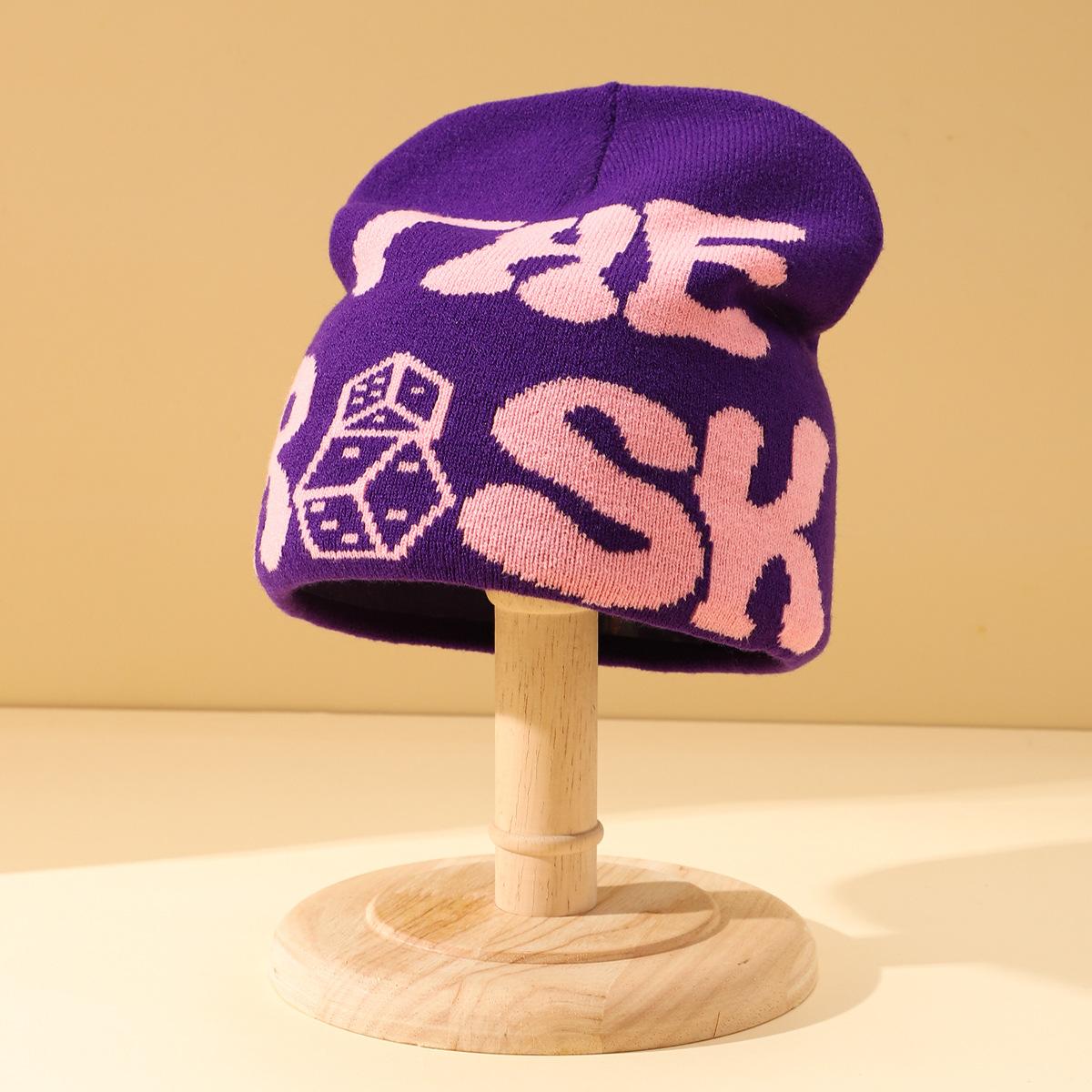 Gorro de Lana con Letras de Moda Estilo Coreano Otoño e Invierno a Prueba de Frío Cálido Gorro de Punto Elástico Versátil Gorro Jacquard Transfronterizo
