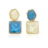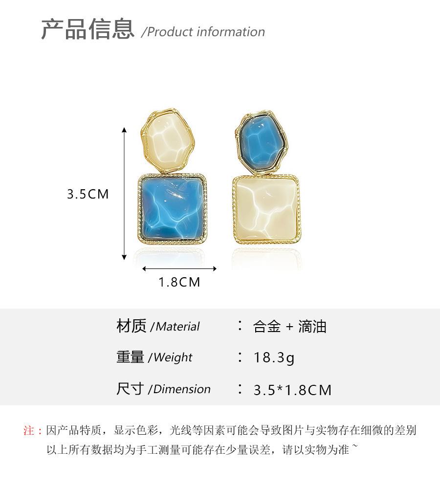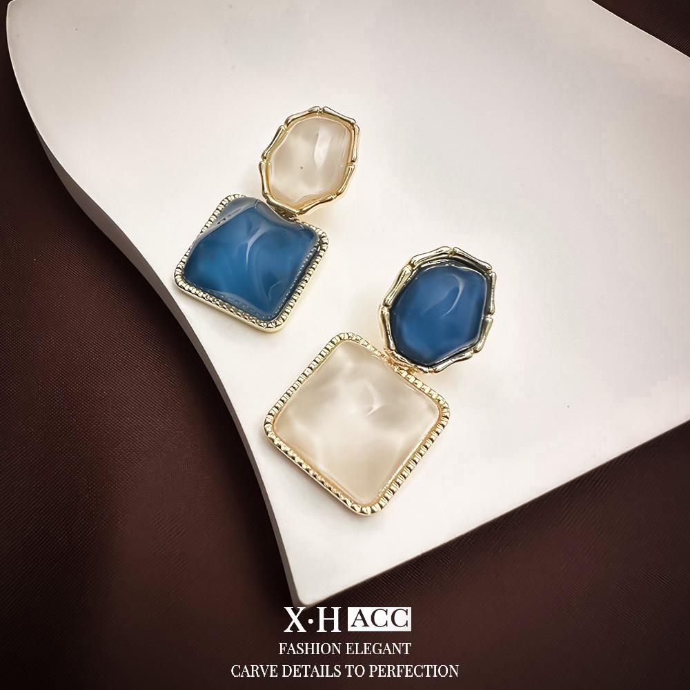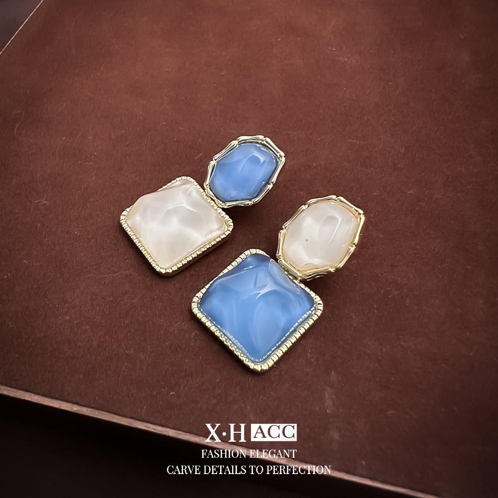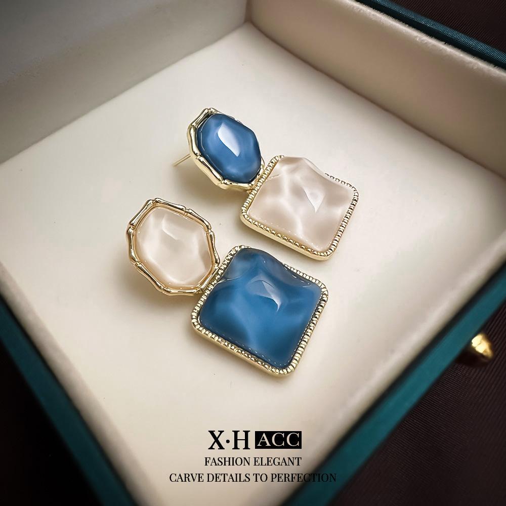 Pendientes cuadrados asimétricos brillantes de aguja plateada azul, pendientes elegantes de nicho simple, pendientes ligeros de lujo de alta gama
