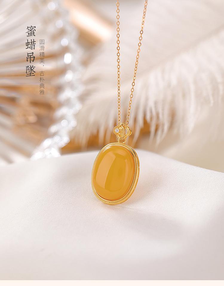 Compra Colgante de plata de ley Yilu S925 bañado en oro con cera de abejas, estilo retro, ligero y de lujo, con forma de fideos de huevo, estilo nacional, nuevo y elegante colgante de estilo chino. al por mayor en Joom.pro