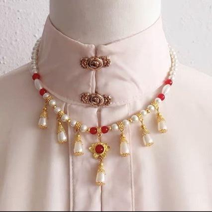 Collar antiguo de perlas cortas para Hanfu, estilo chino para mujer, estilo hada, retro palaciego, colgante de flor de gota de agua de luna luo