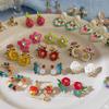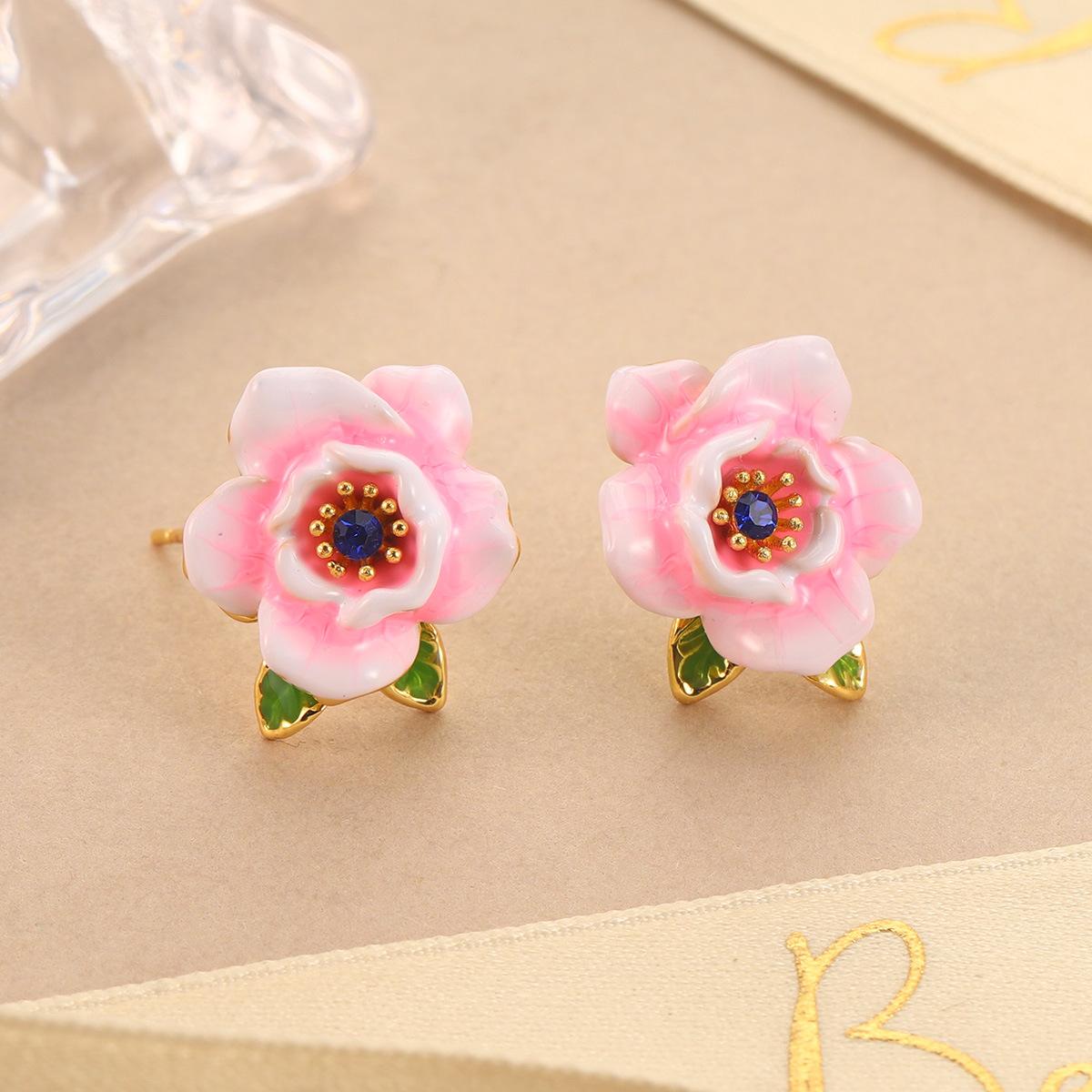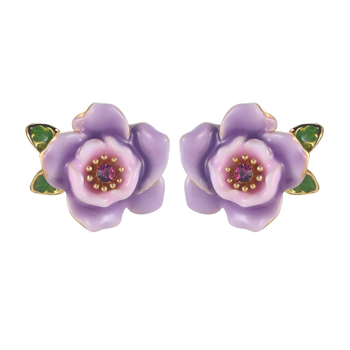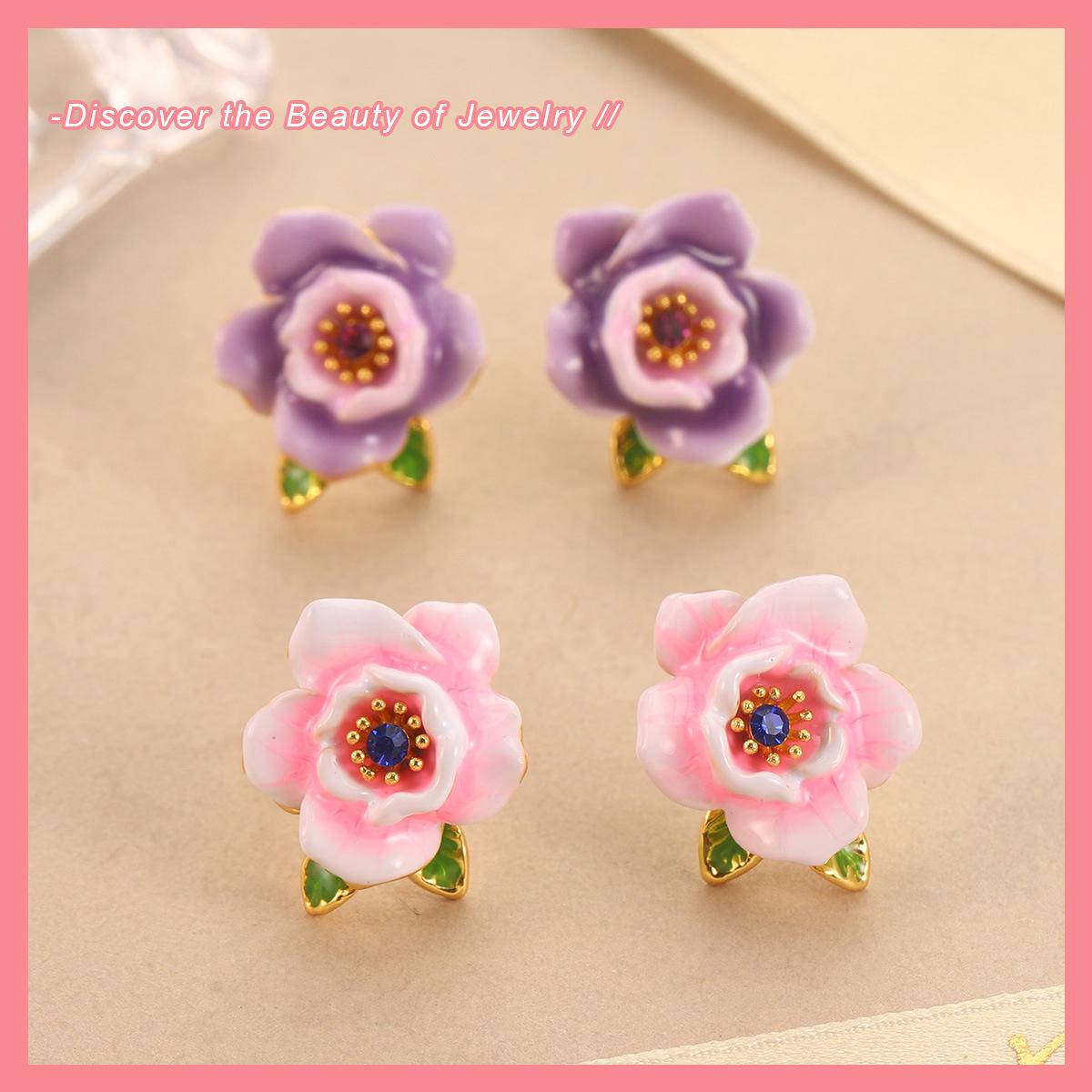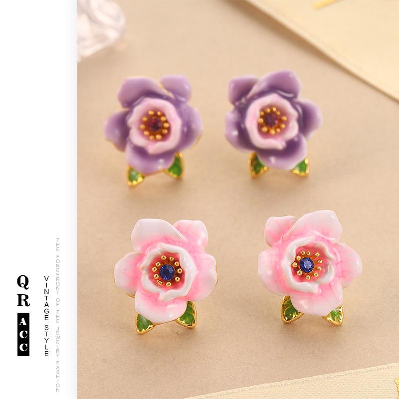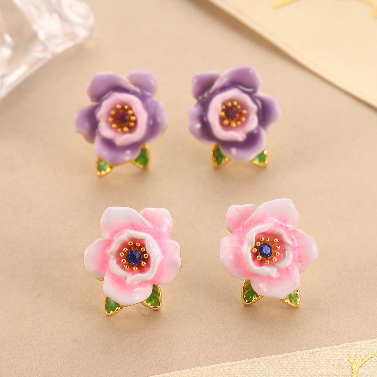 Pendientes retro de flores rosas y moradas, pendientes esmaltados de alta gama, diseño de nicho, nuevos pendientes dulces de verano al por mayor