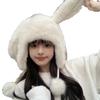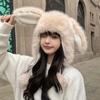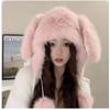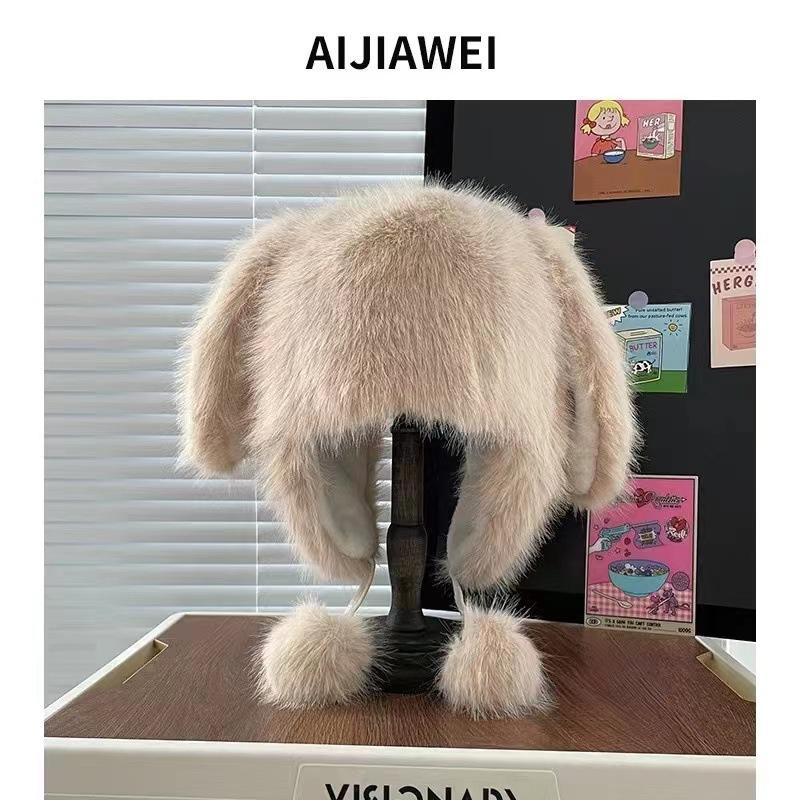 Gorro de conejo Lei Feng con orejas esponjosas para mujer, de piel de zorro gruesa, cálido y resistente al frío, para invierno.
