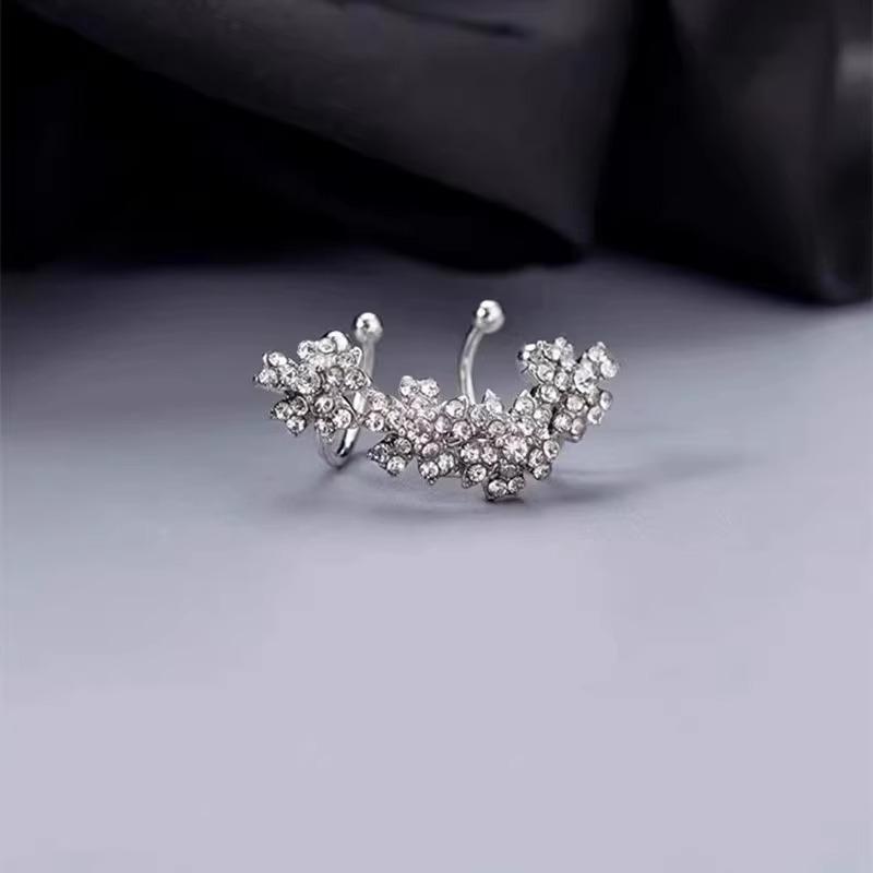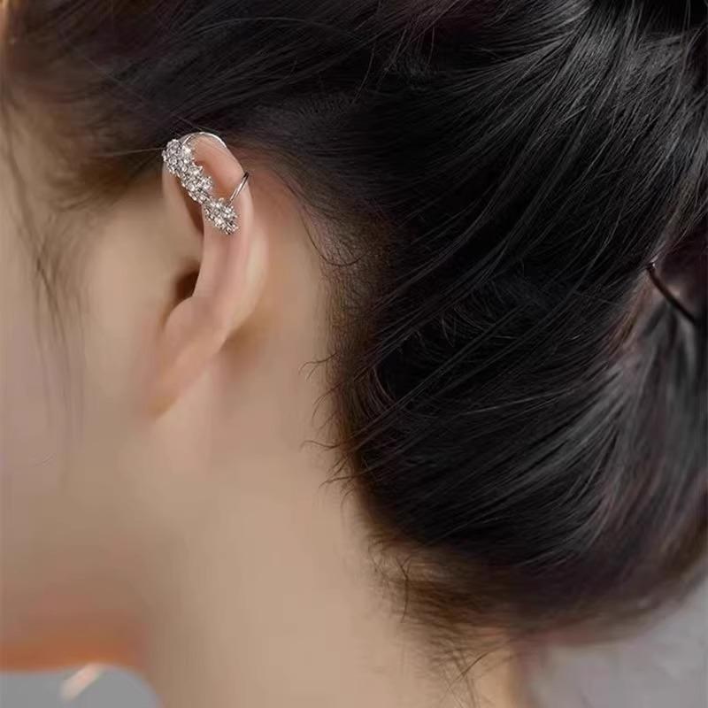 Clip para Hueso de la Oreja de Flor para Mujer, Dulce Estilo Coreano, Lujo Accesible con Incrustaciones de Diamantes, Diseño Moderno, Pendientes Populares Sin Perforación Con