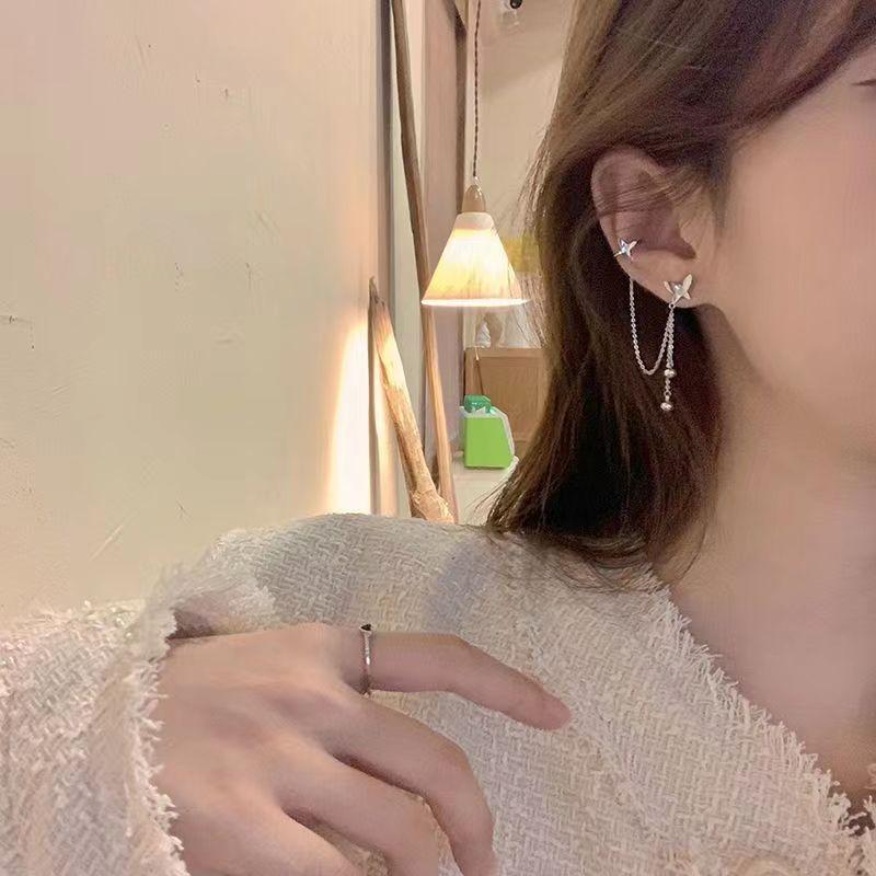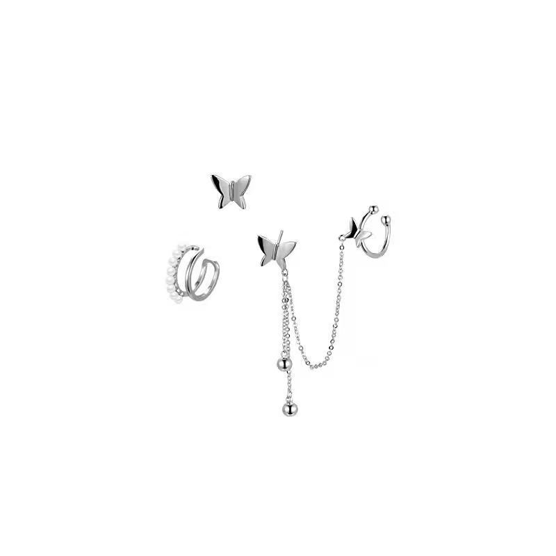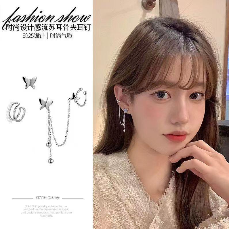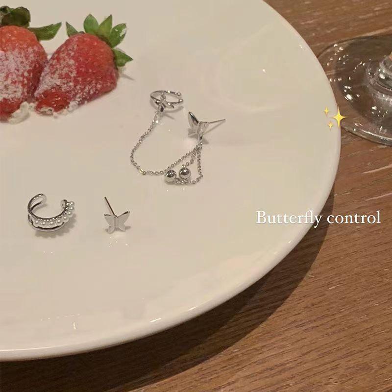 Set de Tres Piezas de Clip para Hueso de la Oreja Aretes de Perlas y Mariposas para Mujer 2025 Nuevo Diseño Nicho Versátil Aretes y Pendientes Modernos