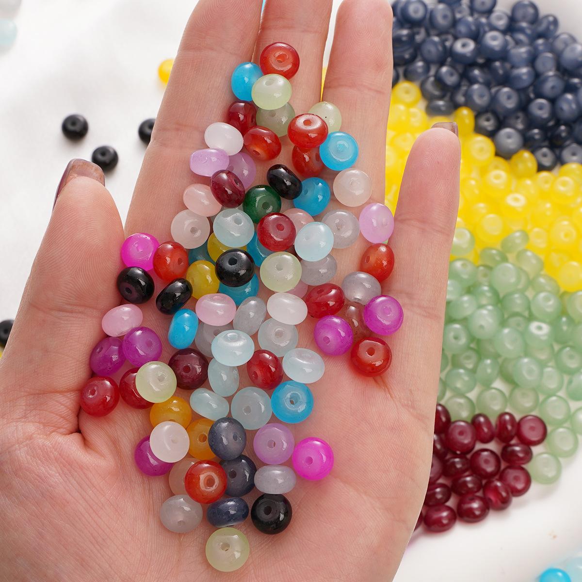 Cuentas de ábaco de jade de imitación de vidrio con agujero recto, cuentas sueltas, cuentas planas, cuentas redondas, accesorios de bricolaje hechos a mano, collar, pulsera, cuentas hechas a mano.