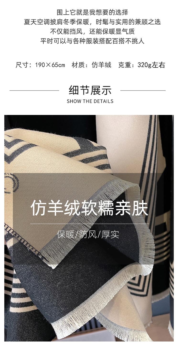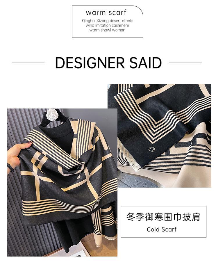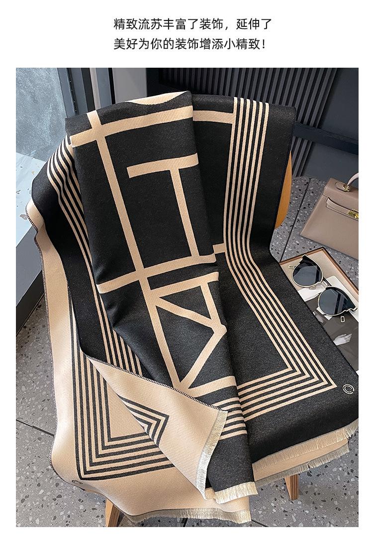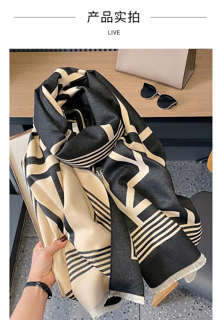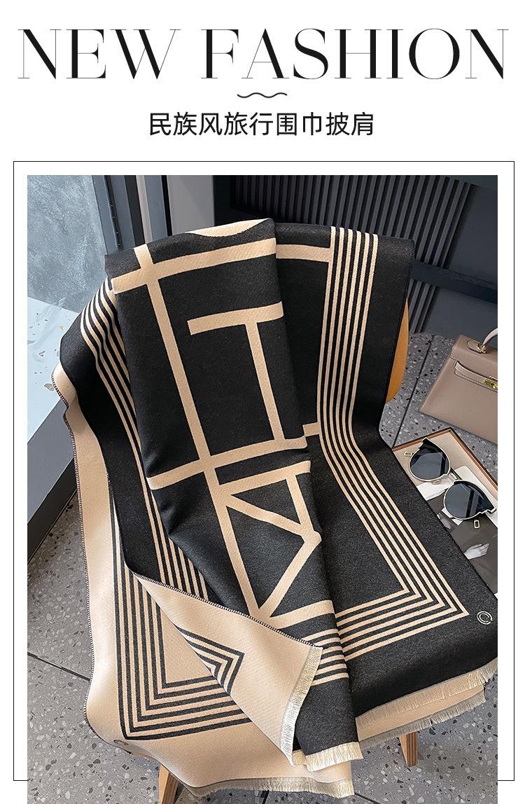 Bufanda de otoño e invierno para mujer, estilo retro europeo y americano, color a juego, cálida, con cuello, imitación de cachemira, letras, doble cara, gruesa, para aire acondicionado.