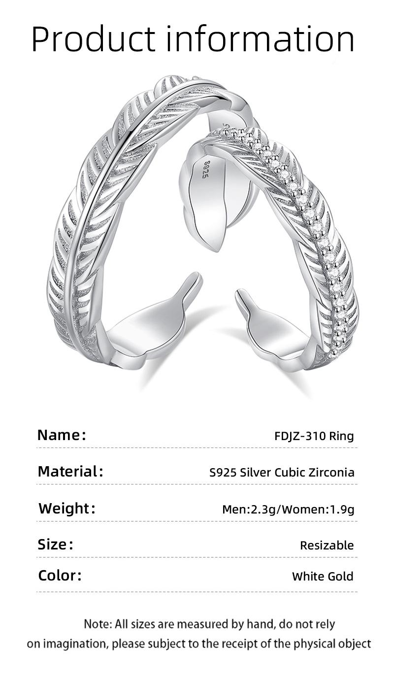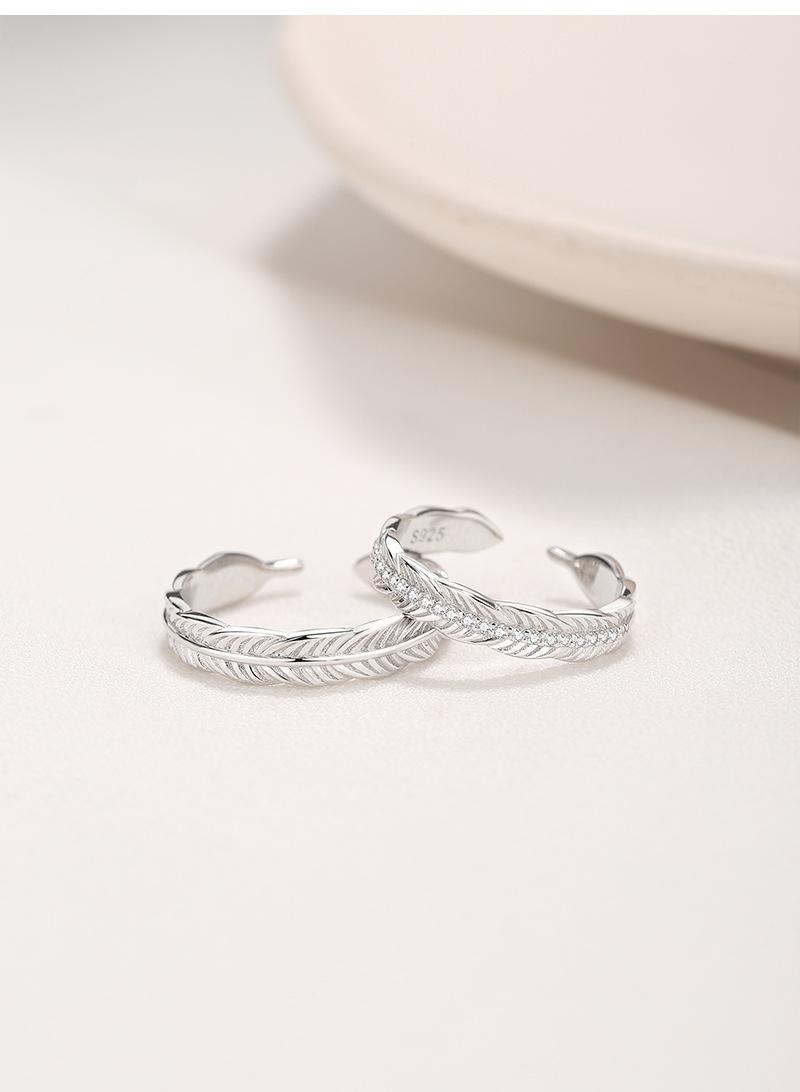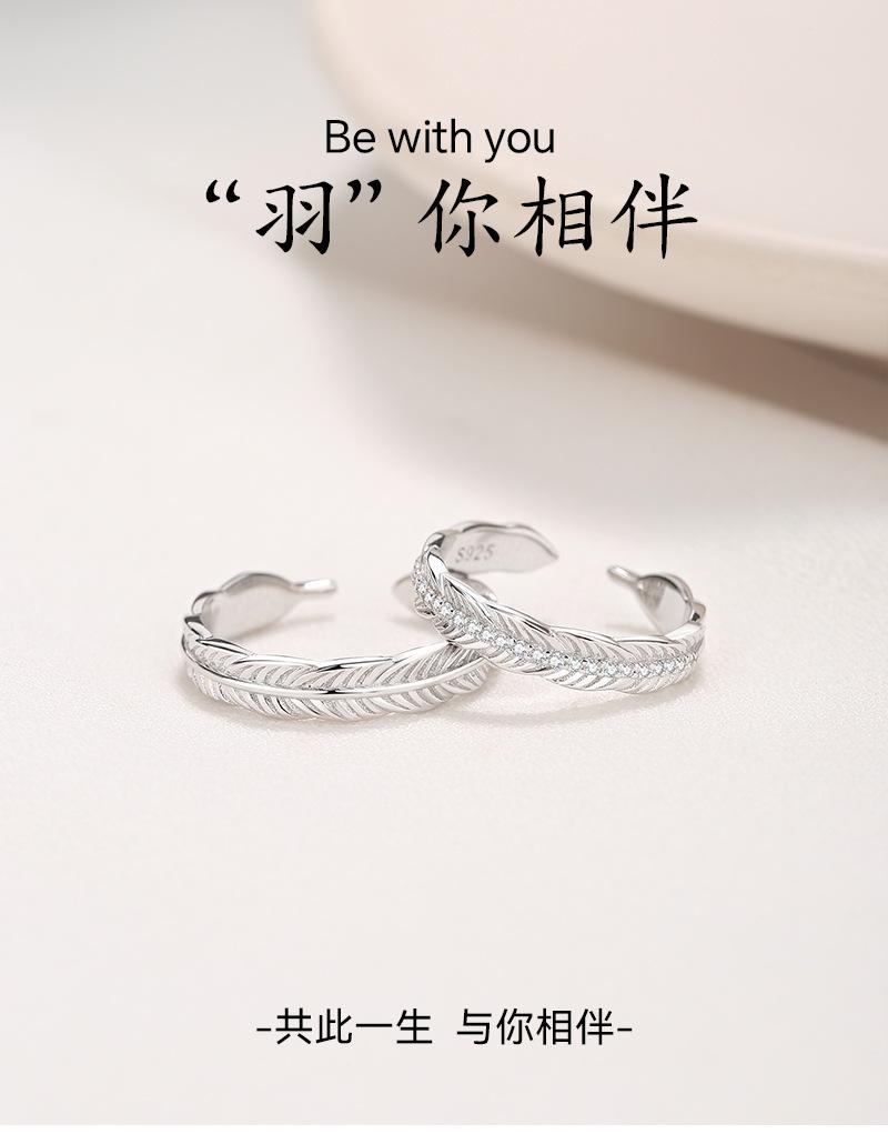Anillo de pareja con pluma que te acompaña, anillo de plata S925 para mujer, anillo de apertura sensorial avanzado de lujo ligero, regalo de San Valentín