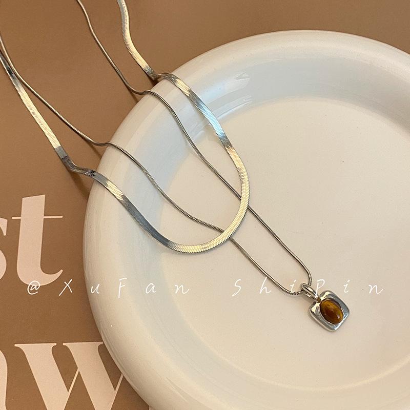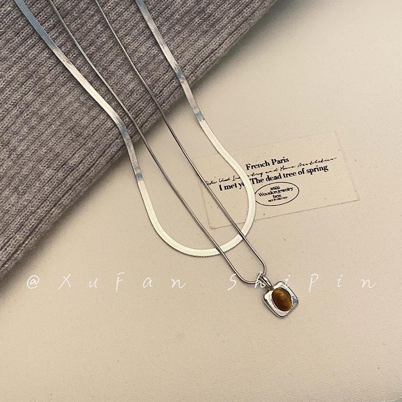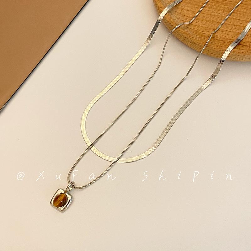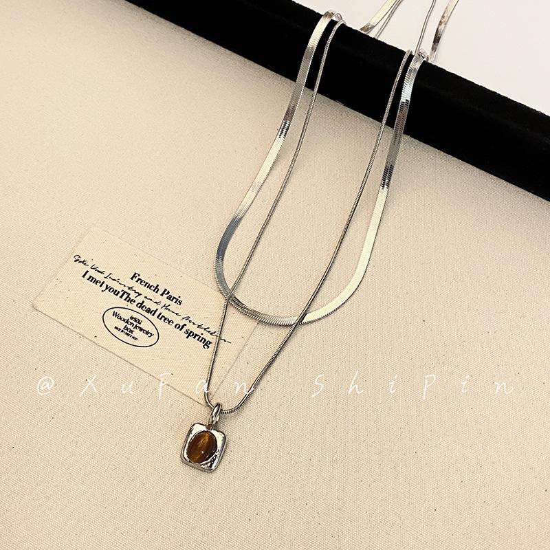 Compra Collar cuadrado de imitación de ojo de tigre de doble capa estilo Maillard para mujer, ligero, de lujo, elegante, de alta gama, con cadena de lana y hueso de serpiente, accesorios. al por mayor en Joom.pro