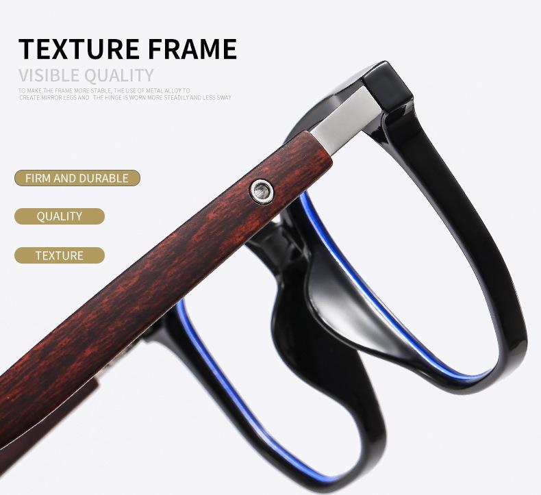 Compra 2024 nuevo vintage montura grande grano de madera ultraligero luz anti-azul espejo plano tendencia de moda gafas de montura igual para hombres y mujeres al por mayor en Joom.pro