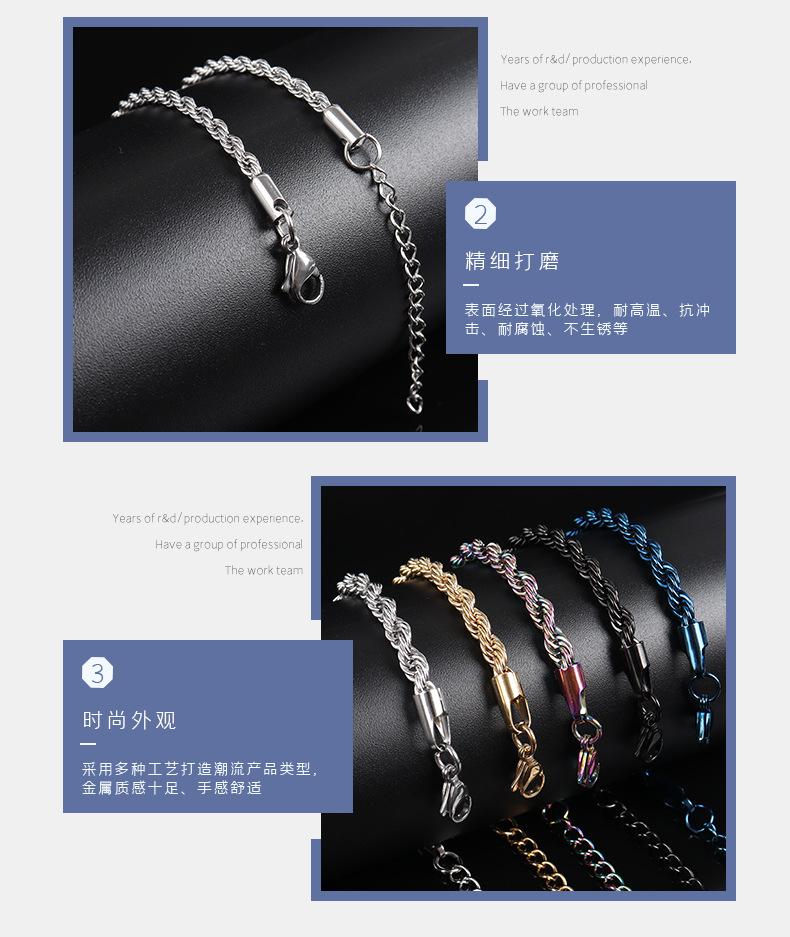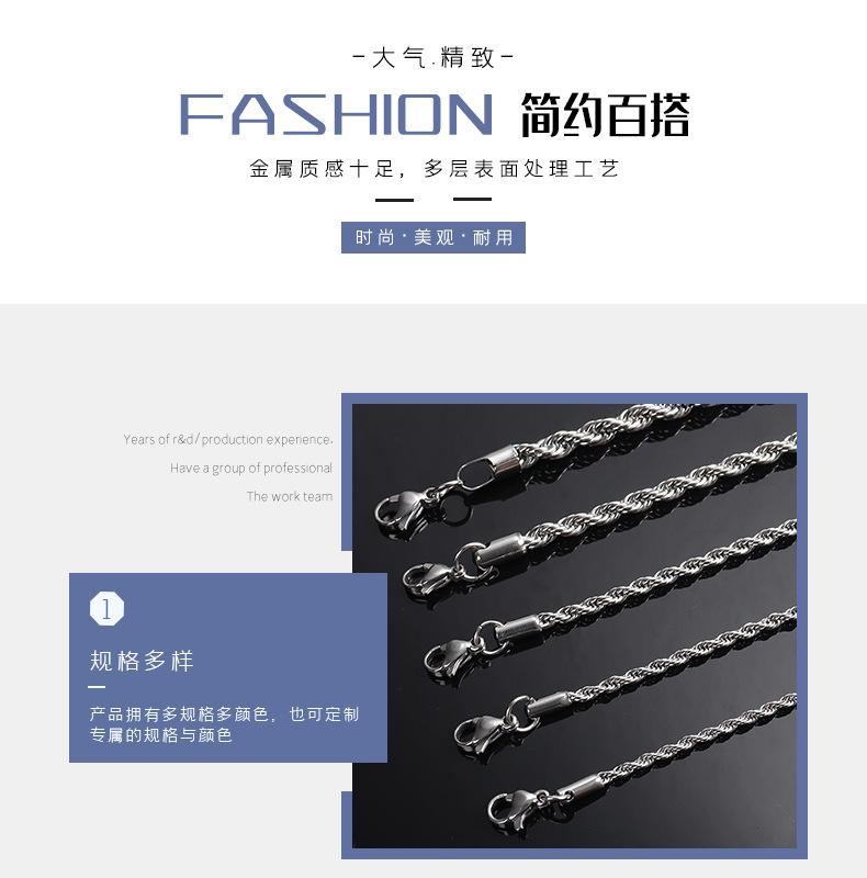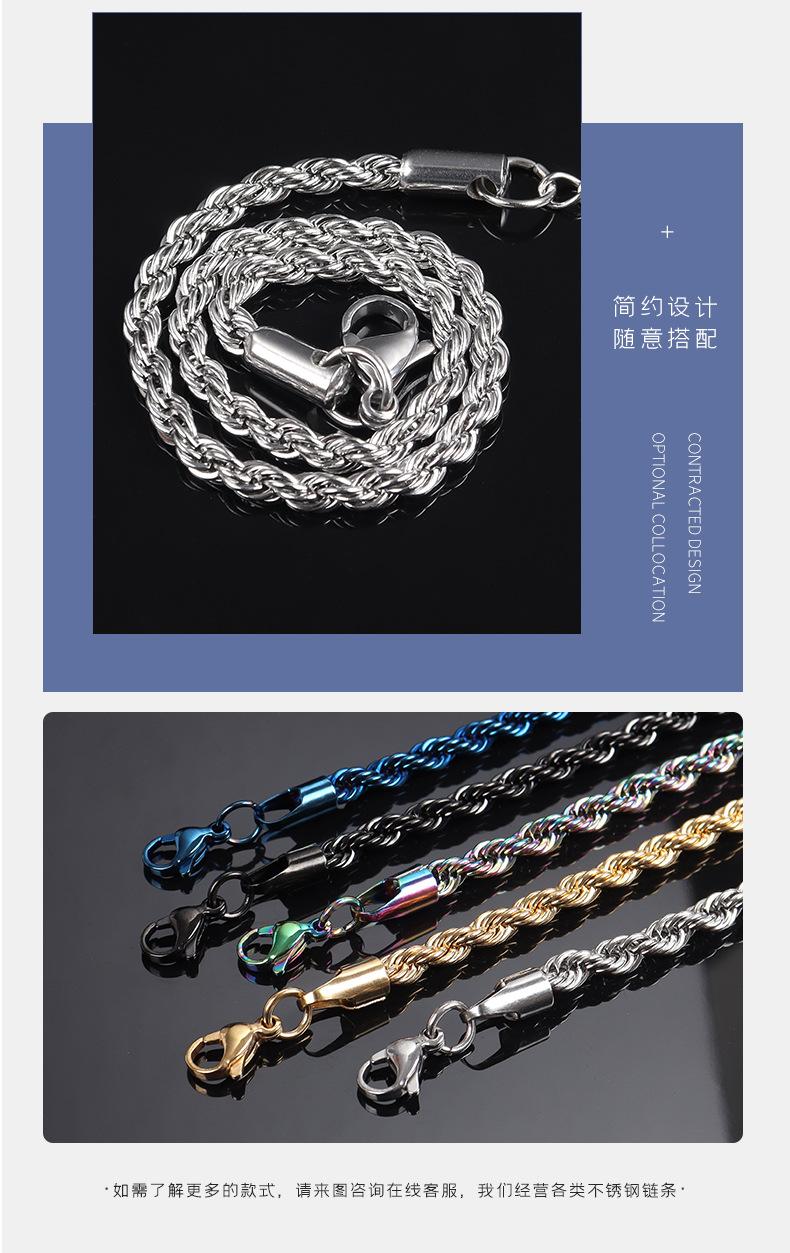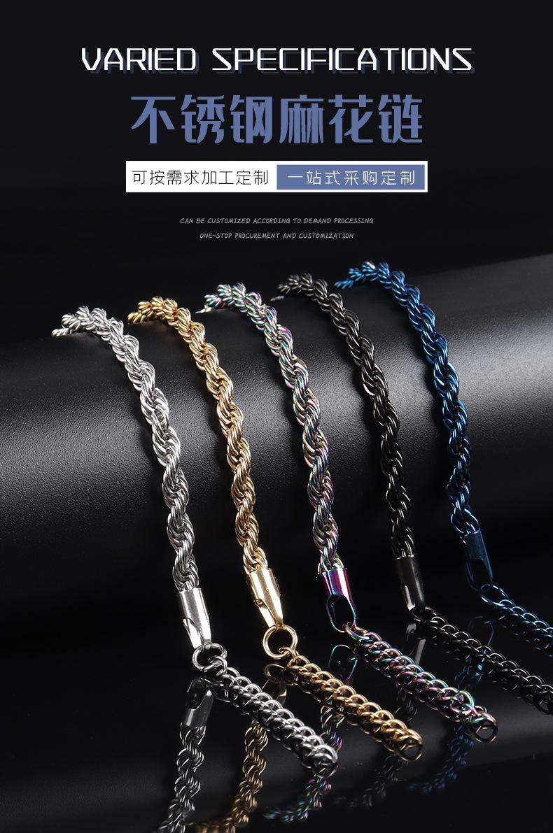 Collar Transfronterizo Europeo y Americano de Acero de Titanio Cadena de Cuello Moderna para Hombre Hip-Hop Cadena Torcida de Acero Inoxidable de 3 mm Cadena Accesorio de Joyería DIY