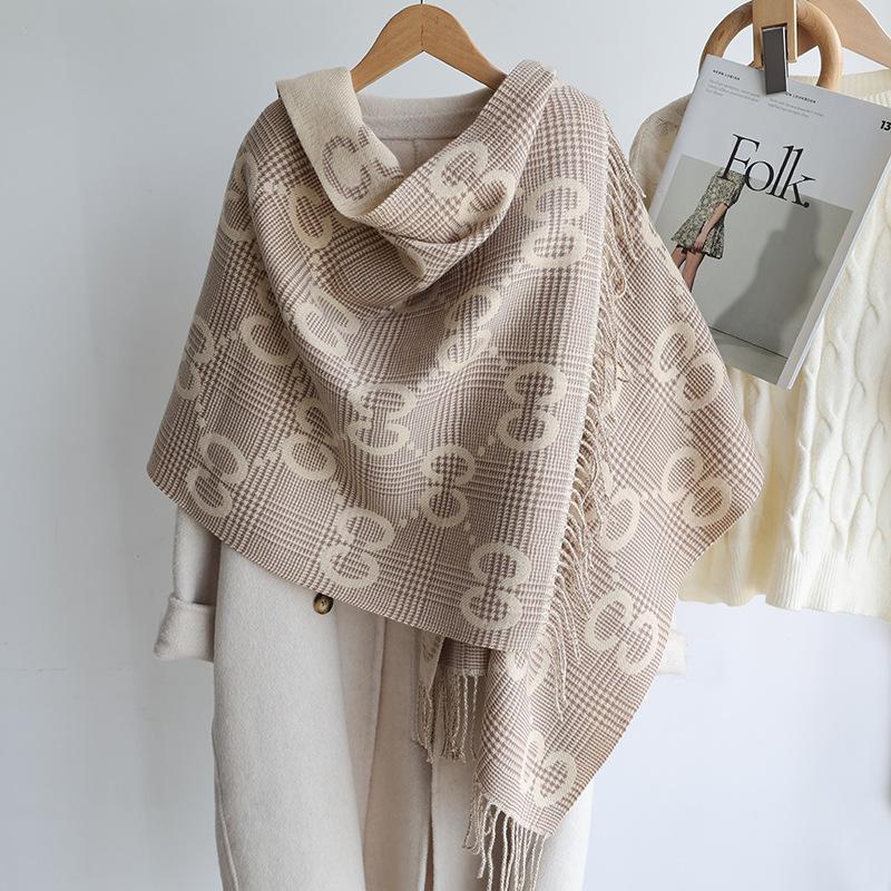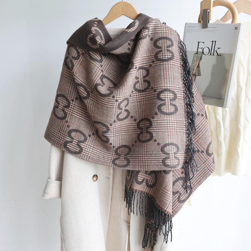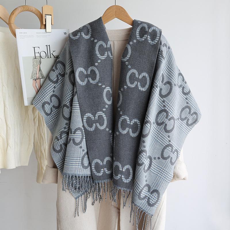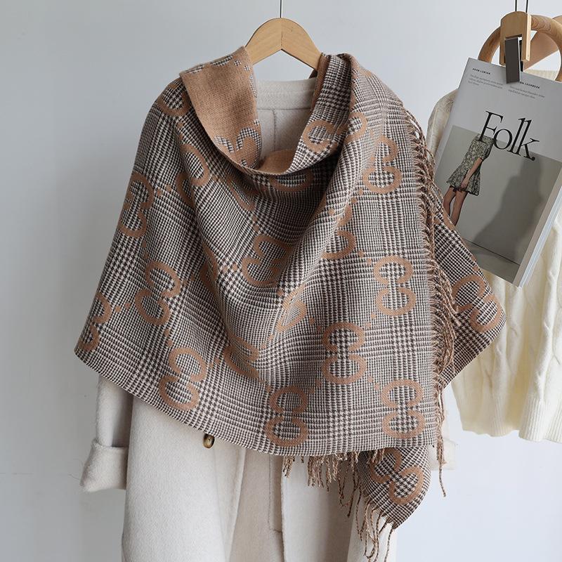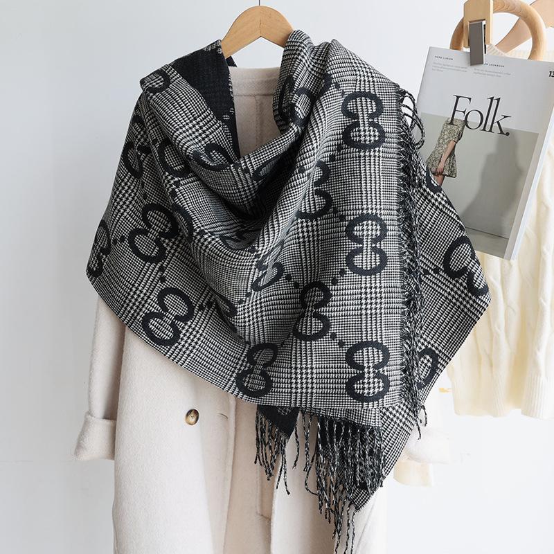 Bufanda de cachemira de imitación con letras europeas y americanas para mujer, otoño e invierno, chal largo cálido de doble cara, nuevo estilo, bufanda gruesa para estudiantes que combina con todo.