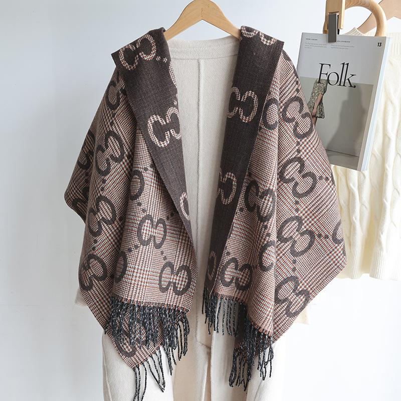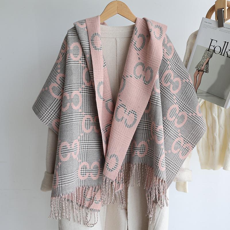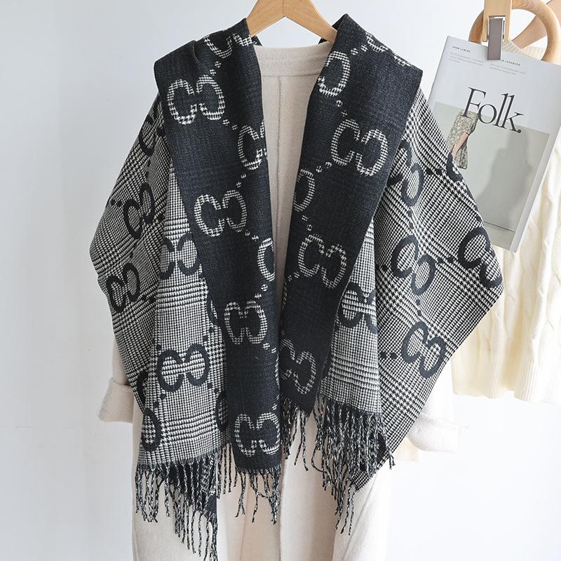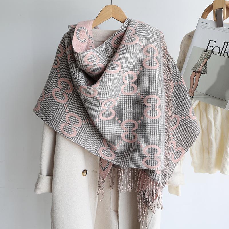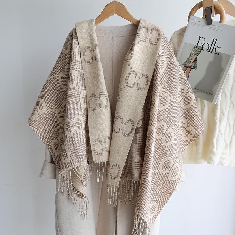 Bufanda de cachemira de imitación con letras europeas y americanas para mujer, otoño e invierno, chal largo cálido de doble cara, nuevo estilo, bufanda gruesa para estudiantes que combina con todo.