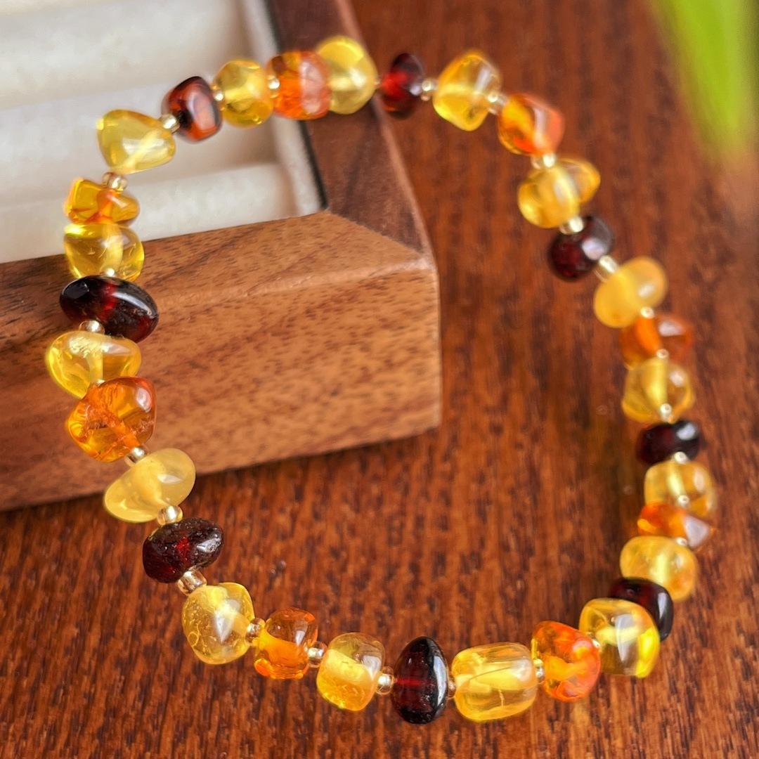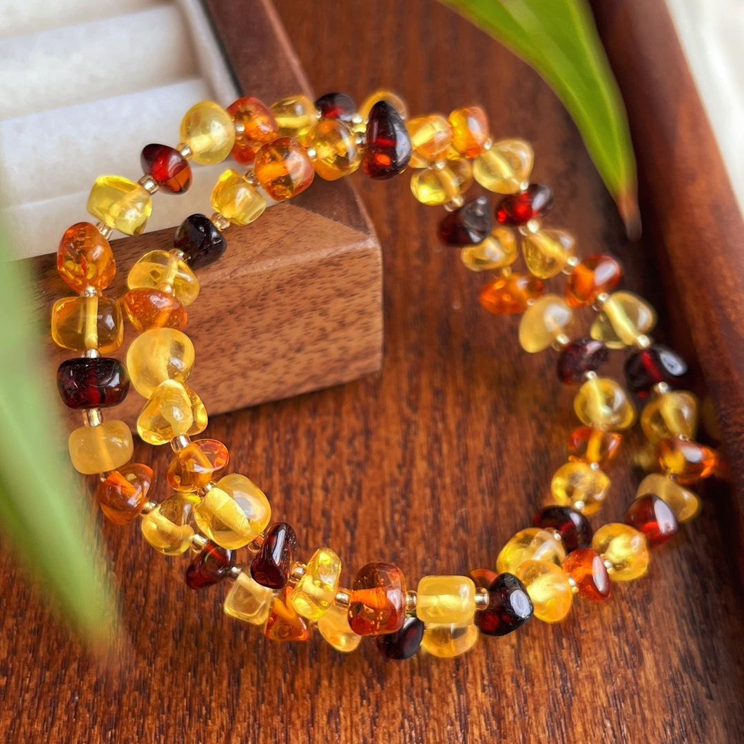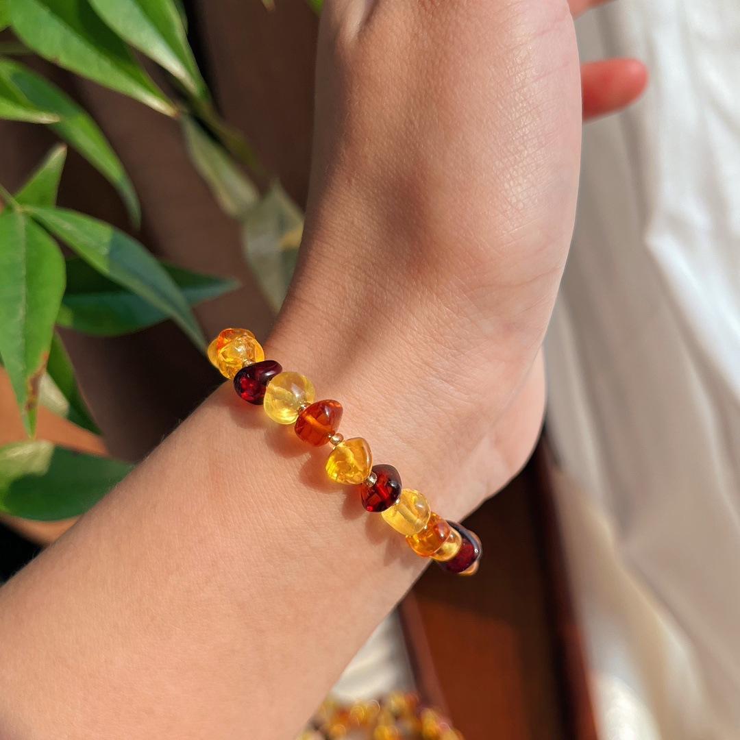 Pulsera Guofeng vintage Maillard de color natural, ámbar, púrpura sangre