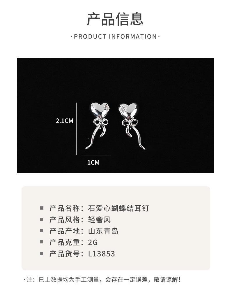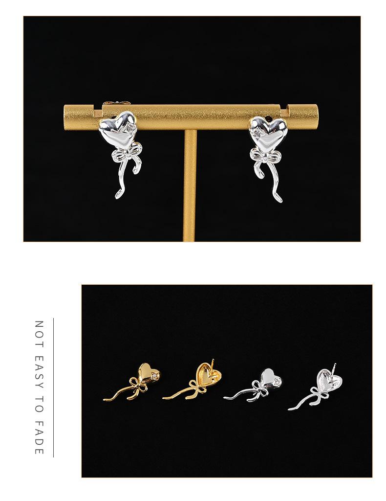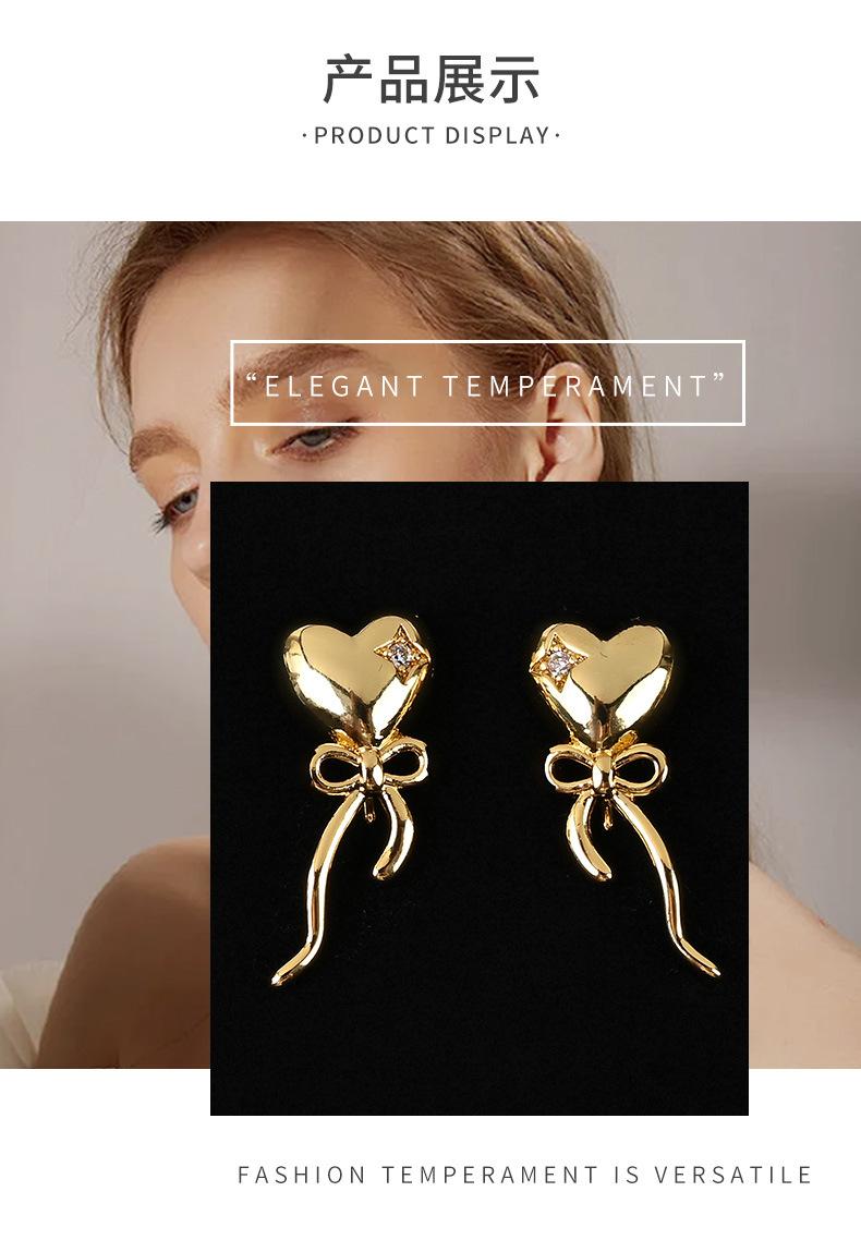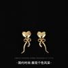Nuevos Aretes Retro de Corazón de Piedra con Lazo, Diseño de Alta Gama, Estilo Nicho, Aretes de Lujo Ligero