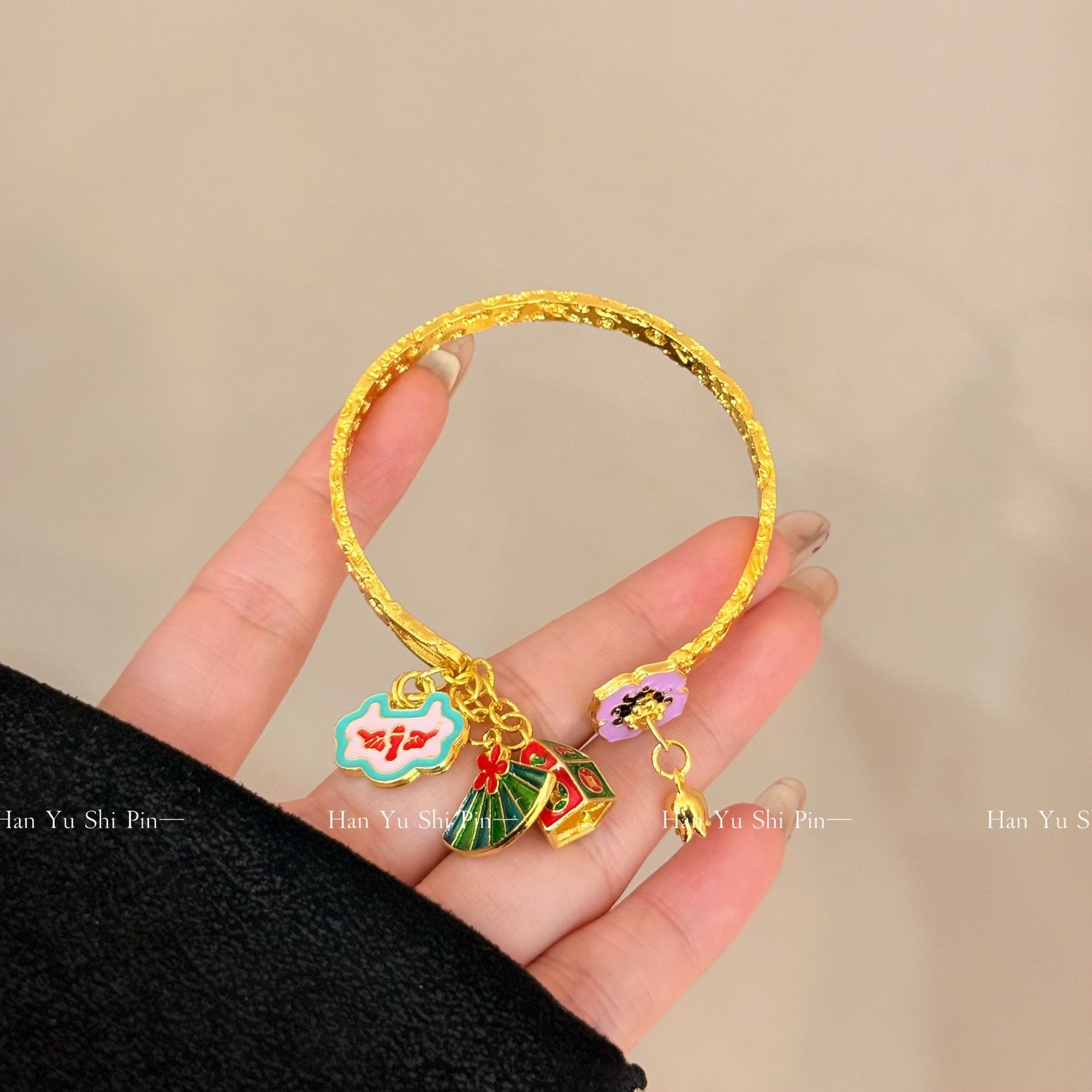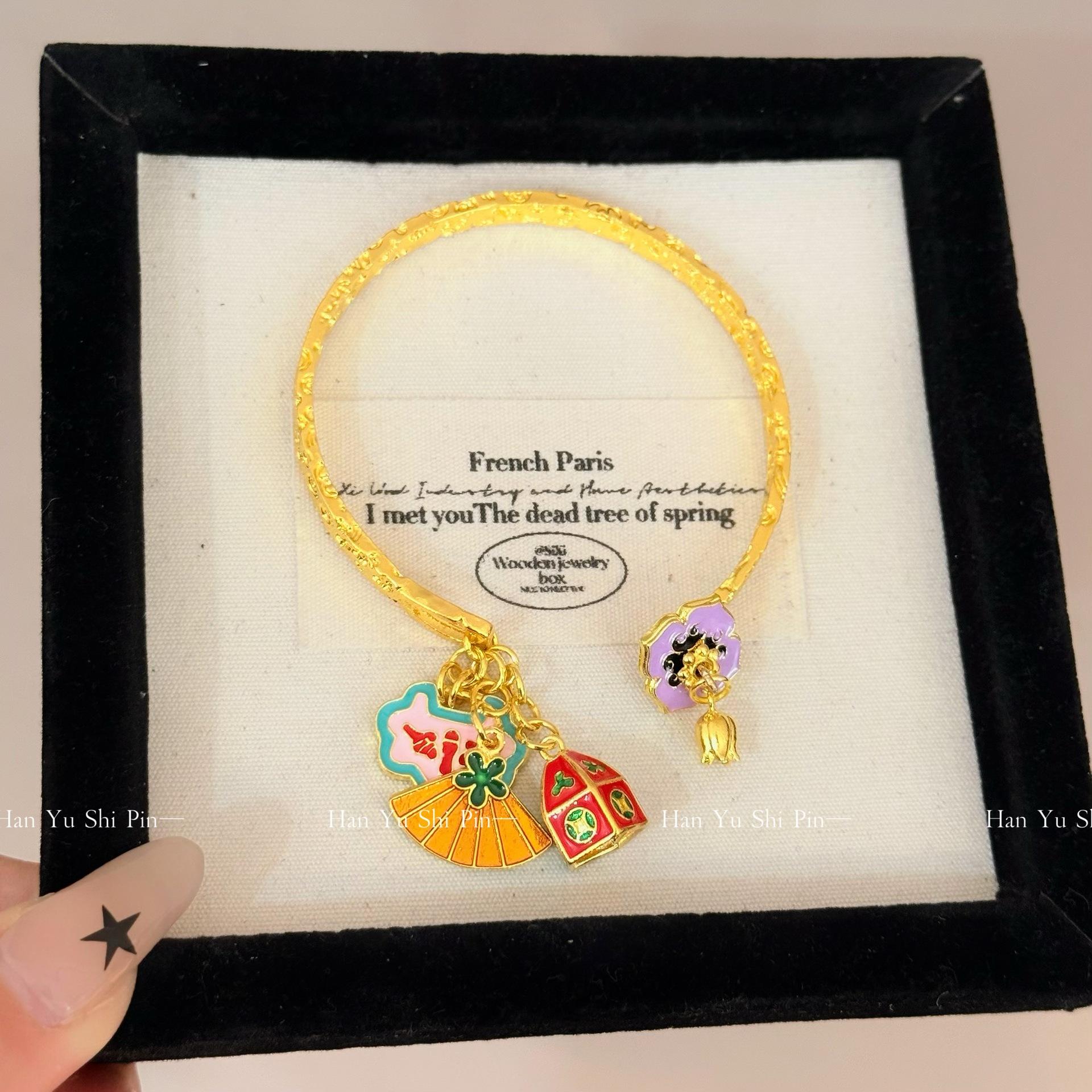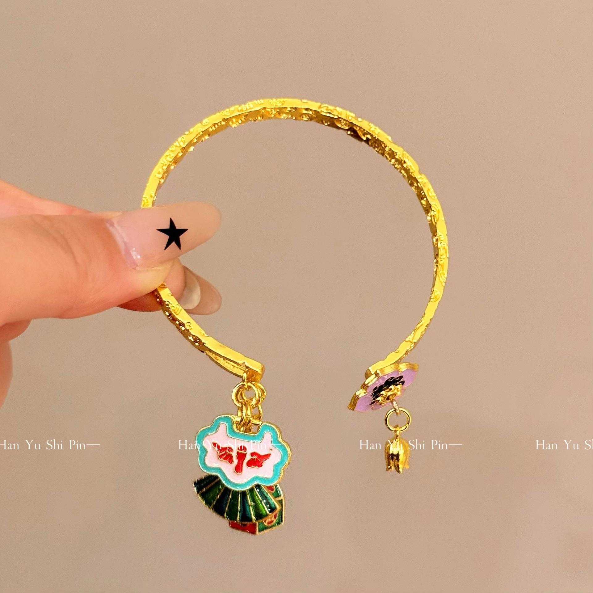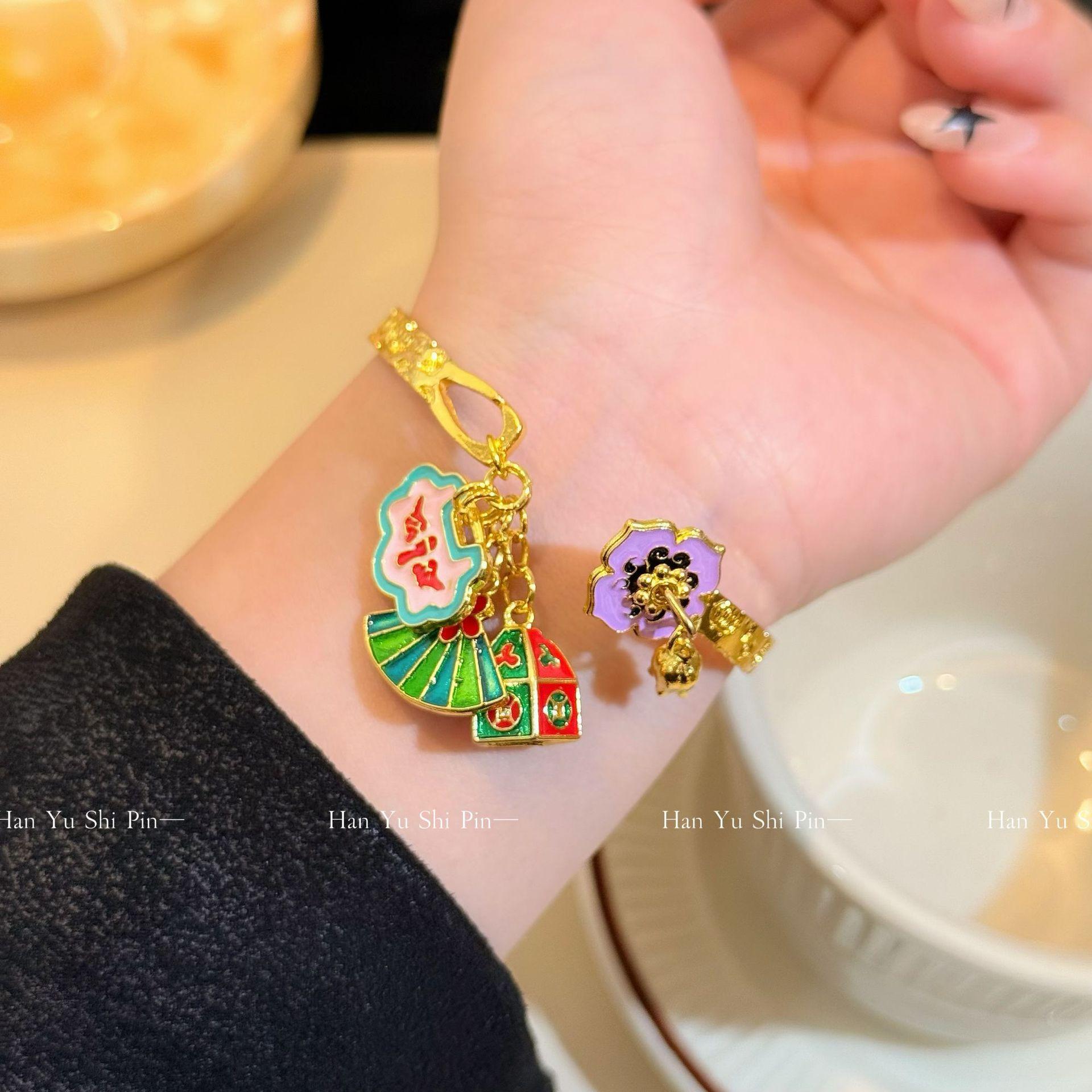 Pulsera Antigua Sentido Avanzado Candado Ruyi Ping An Moda Nueva Esmalte Chino Gota de Aceite Abanico Flor Colgante Pulsera para Mujer