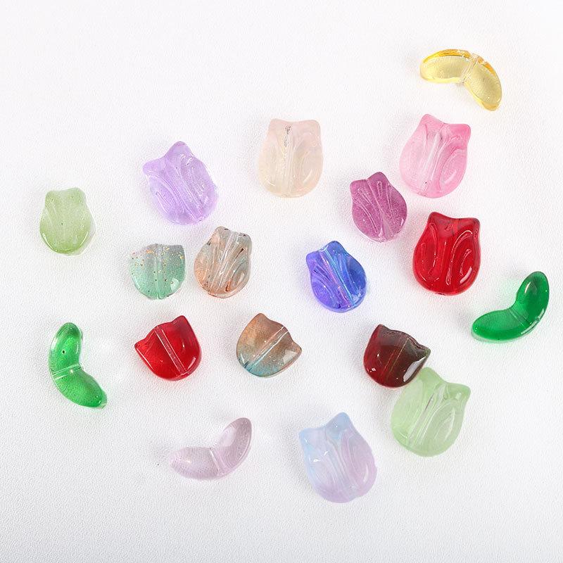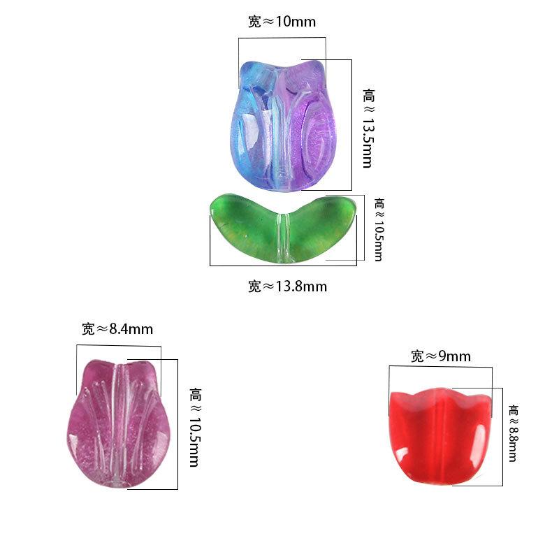 Material de cuentas con degradado de pétalos de tulipán de vidrio, para hacer tú mismo, collar, pulsera, pendientes, accesorios de joyería, horquilla