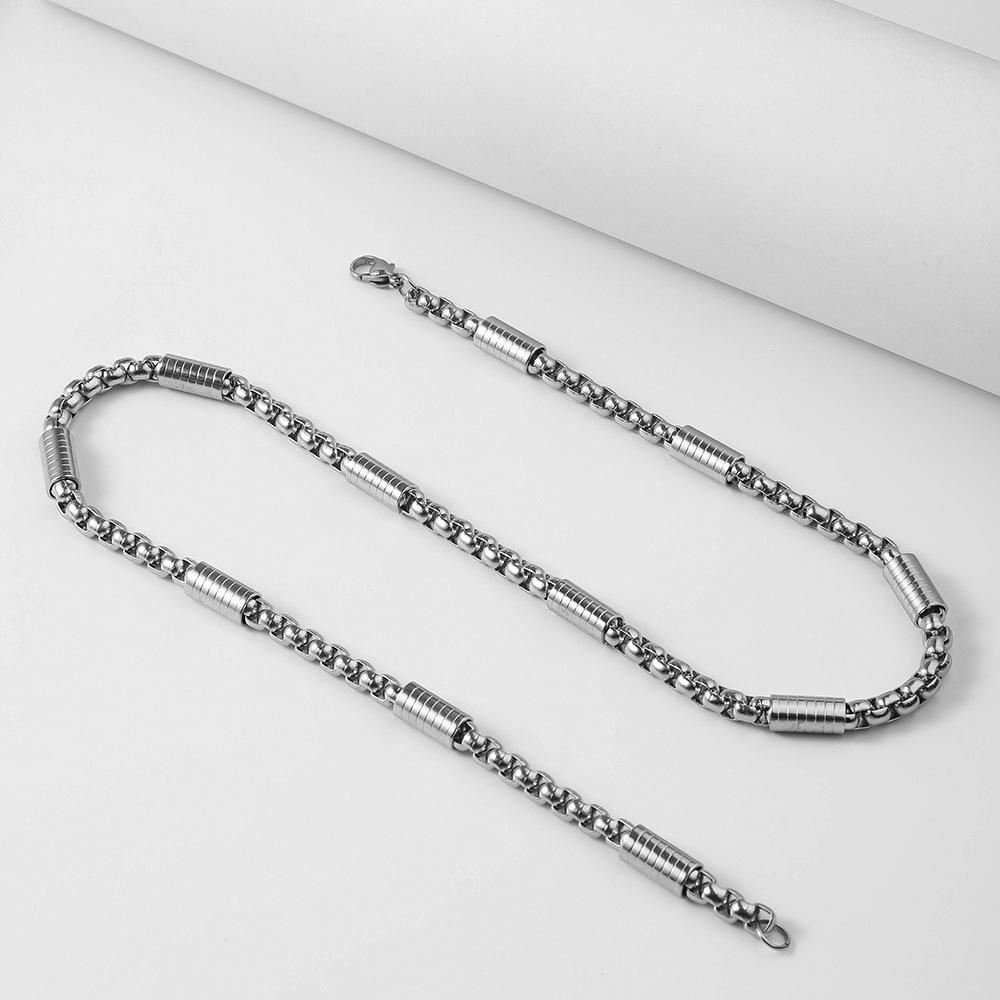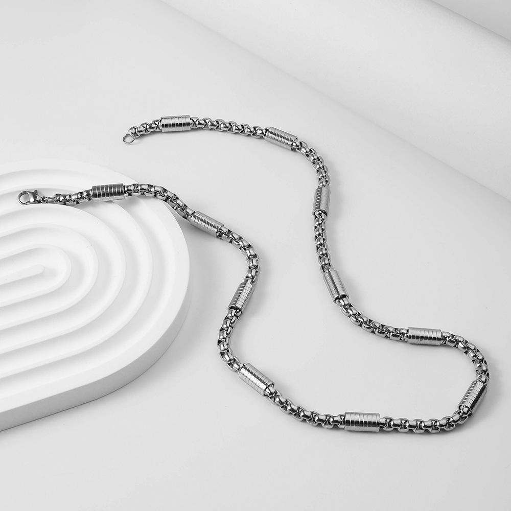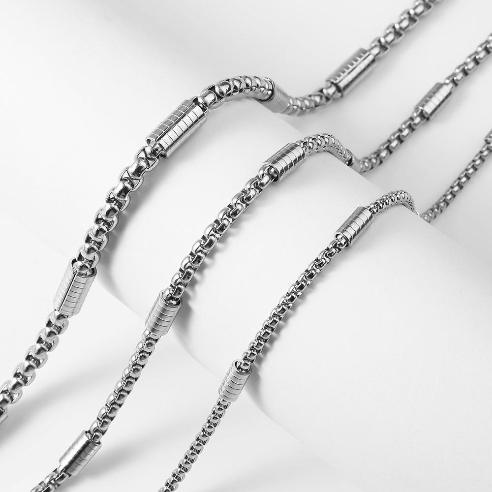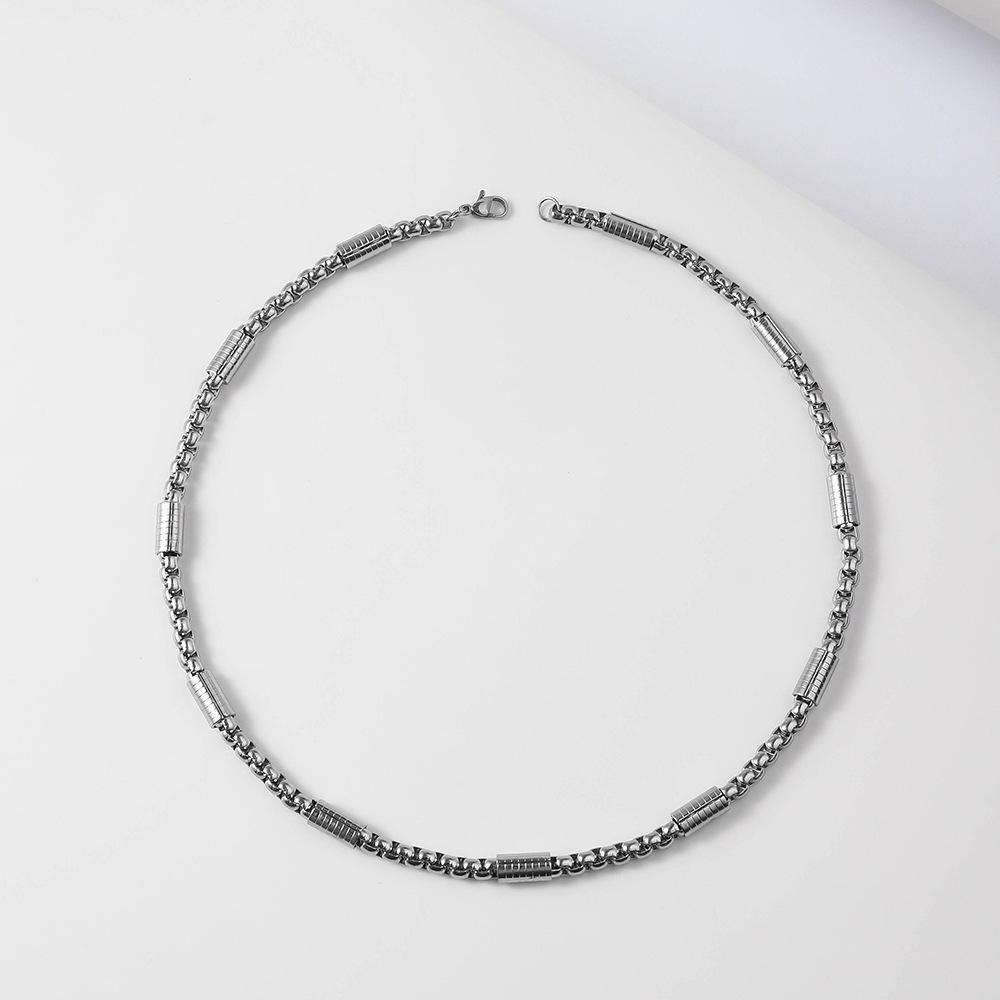 Collar de Hombre Transfronterizo Más Vendido Collar de Moda Personalizado Hip-hop Accesorios Agresivos Acero de Titanio Libre de Color Cadena de Perlas Cuadradas