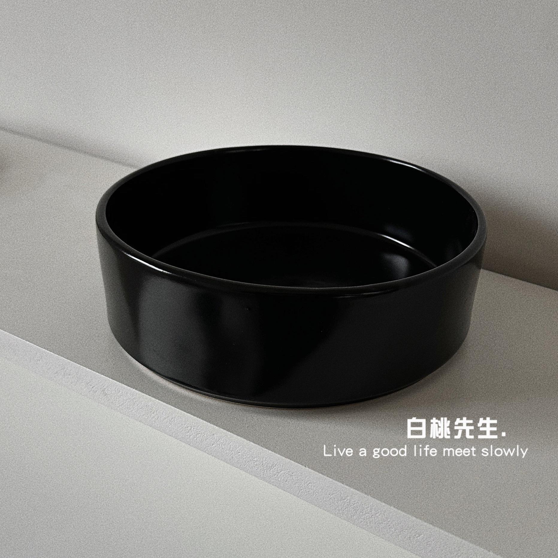 Vajilla de Cerámica Estilo Black-Feel Tazón para Fideos Instantáneos Tazón para Beber Color Puro Simple Tazón Retro para Gatos Tazón para Comida Occidental