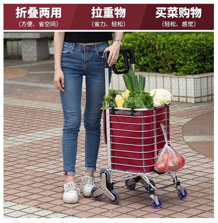 Carrito de compras para el hogar, carrito pequeño, carrito de compras plegable para escalar, carrito, carrito para personas mayores, carrito ligero, carrito, remolque