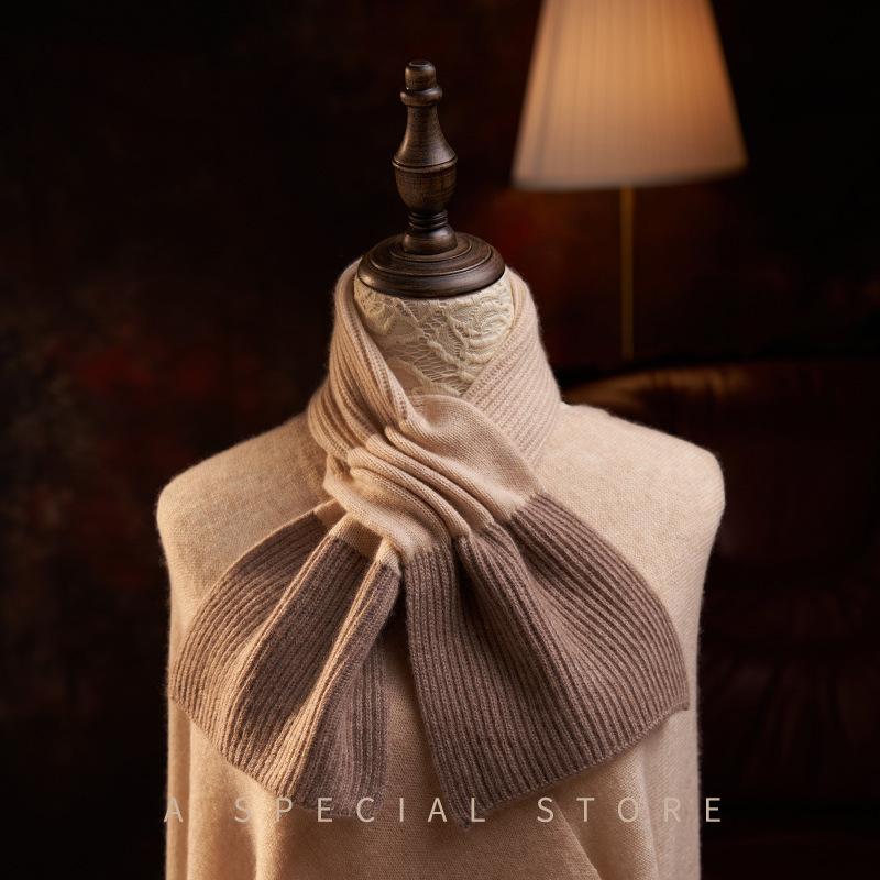 Bufanda pequeña de punto cruzado cálida con cuello de cuello a juego de alta gama para mujer otoño e invierno 2024