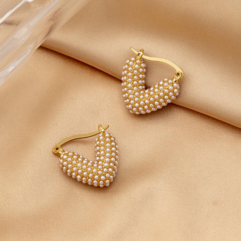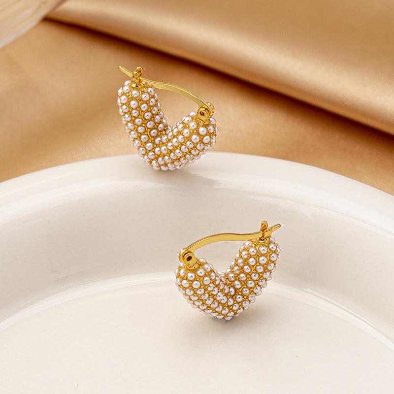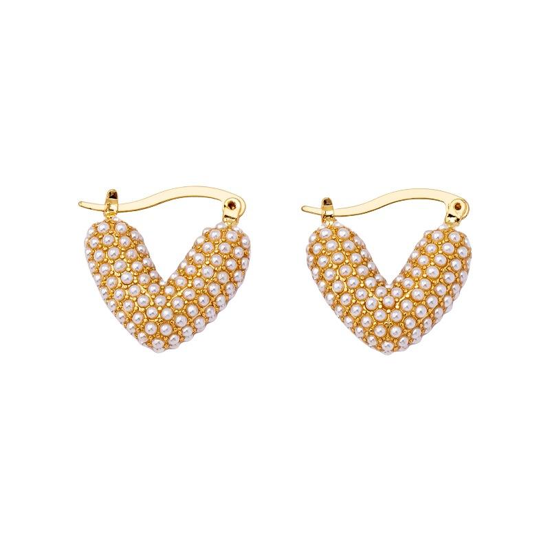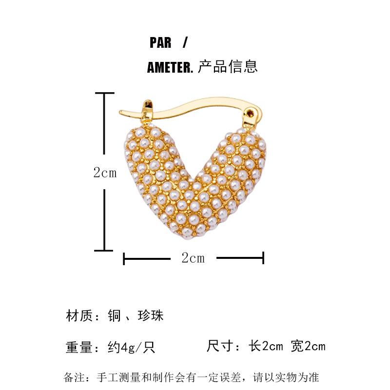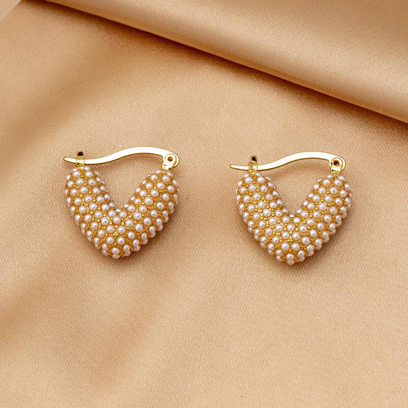 Lujo Ligero, Pendientes de Perlas Simples y Dulces en Forma de Corazón, Nuevos Puños de Oreja Versátiles de Moda, Pendientes de Tuerca Elegantes de Alta Gama para Mujer