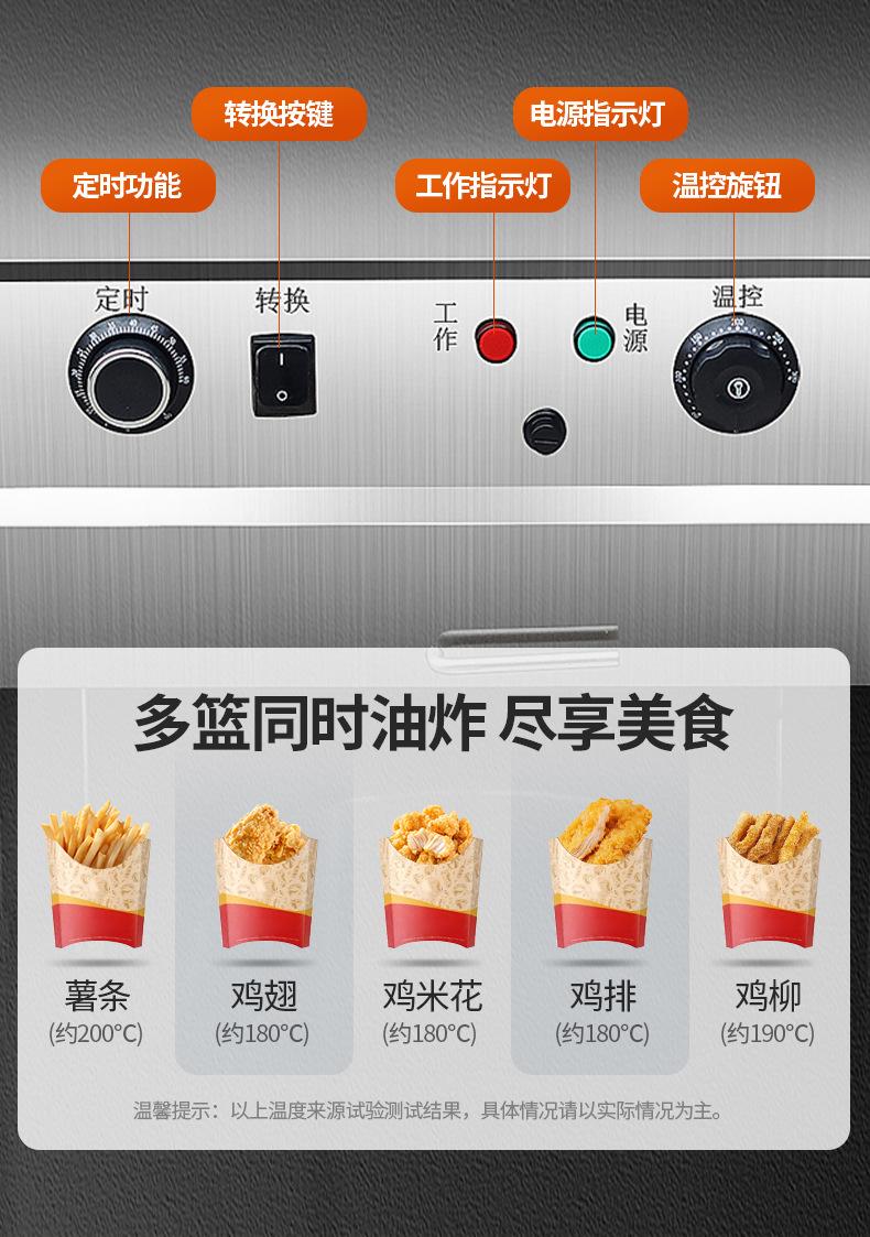 Freidora Vertical de Doble Cilindro Calentamiento Eléctrico Comercial Gran Capacidad Temporizada Máquina para Pollo Bistec Brochetas Masa Frita Palitos Freidora Eléctrica Vertical con Control de Temperatura