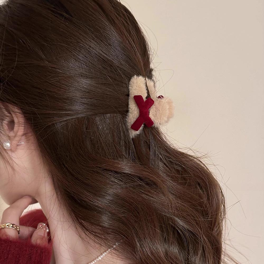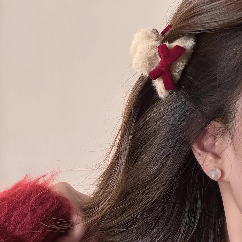 Moño de Terciopelo de Alta Gama Flequillo de Año Nuevo 2024 Horquilla Retro Clip de Princesa Tocado Pequeño Otoño e Invierno