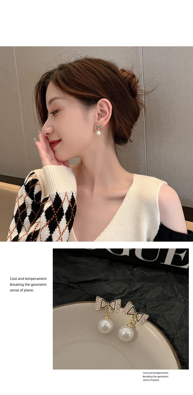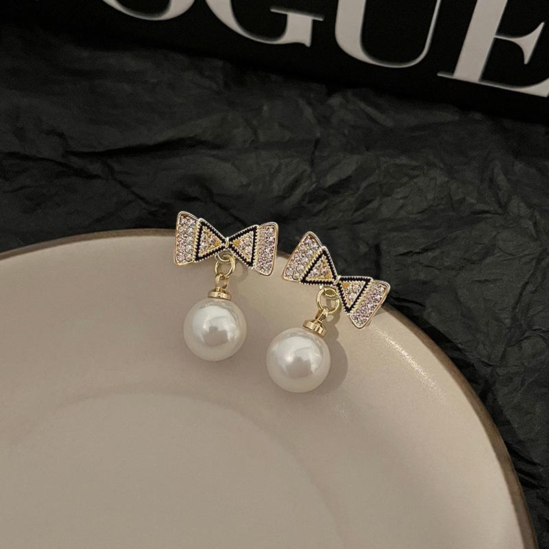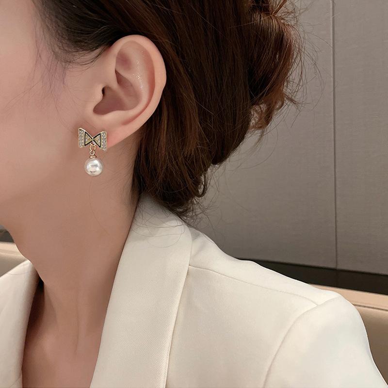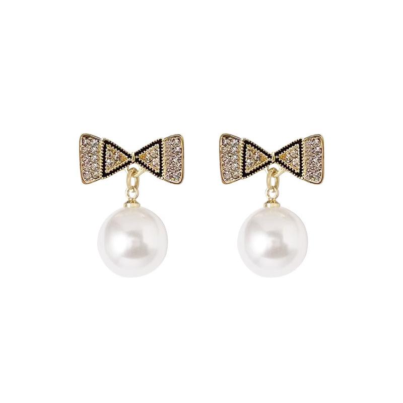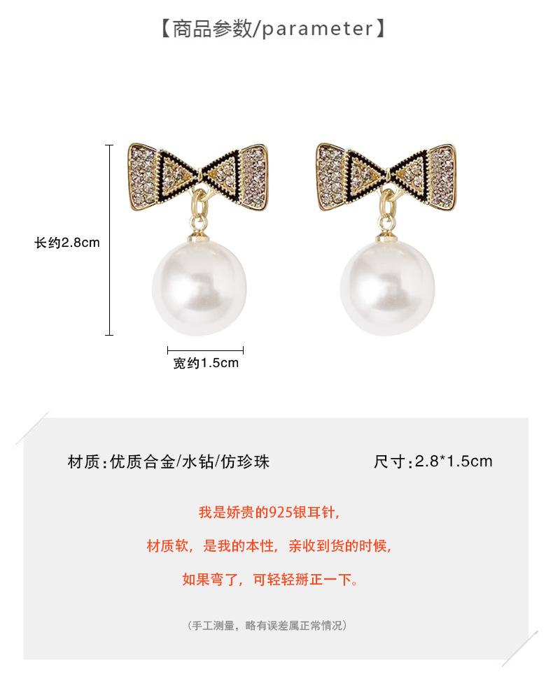 Pendientes de plata s925 con forma de perla y lazo coreano, de temperamento sencillo, pequeños y frescos, para damas, de alta gama y combinables.