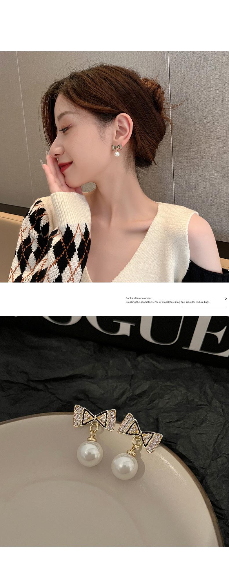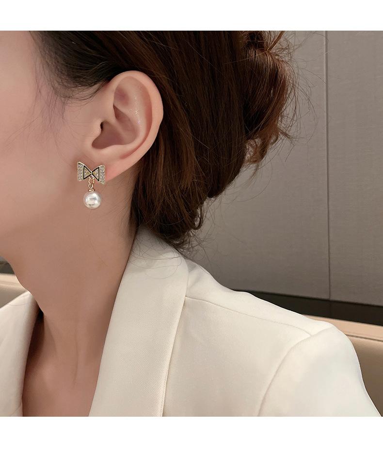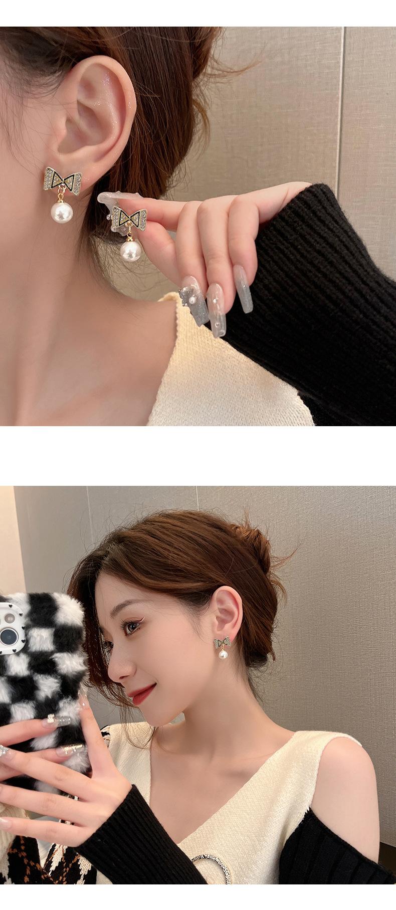 Pendientes de plata s925 con forma de perla y lazo coreano, de temperamento sencillo, pequeños y frescos, para damas, de alta gama y combinables.