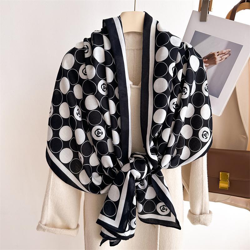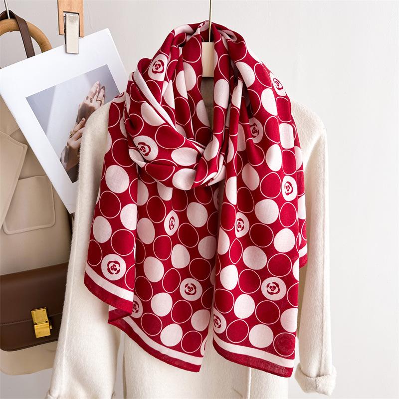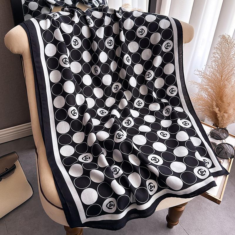 Bufanda larga estampada de estilo coreano, nueva, de lunares, de algodón y lino, para protección solar, ideal para otoño e invierno, para mujer.