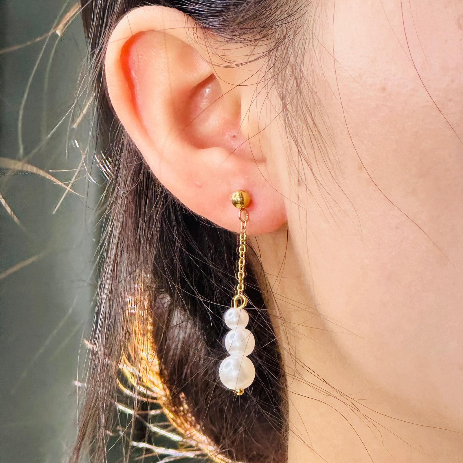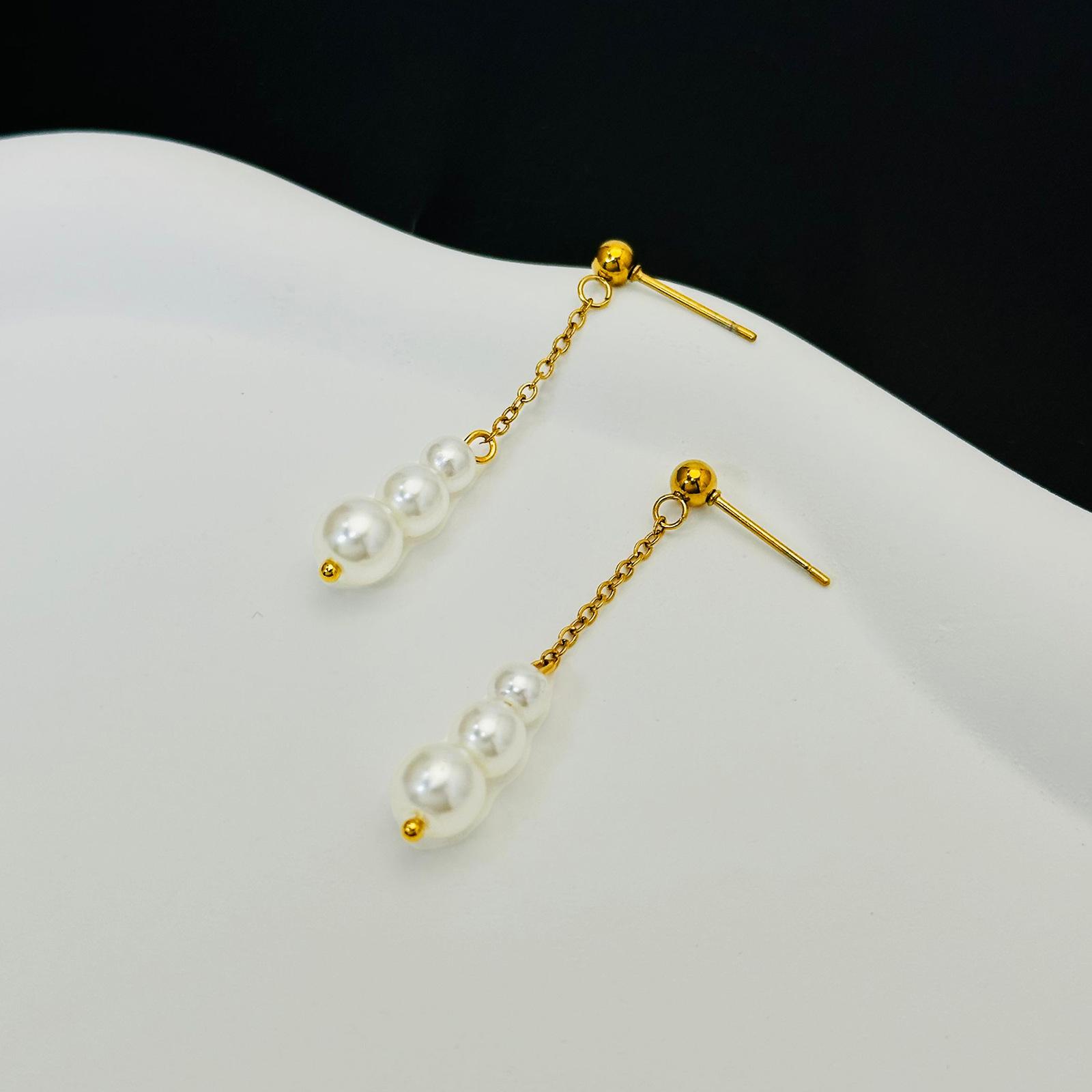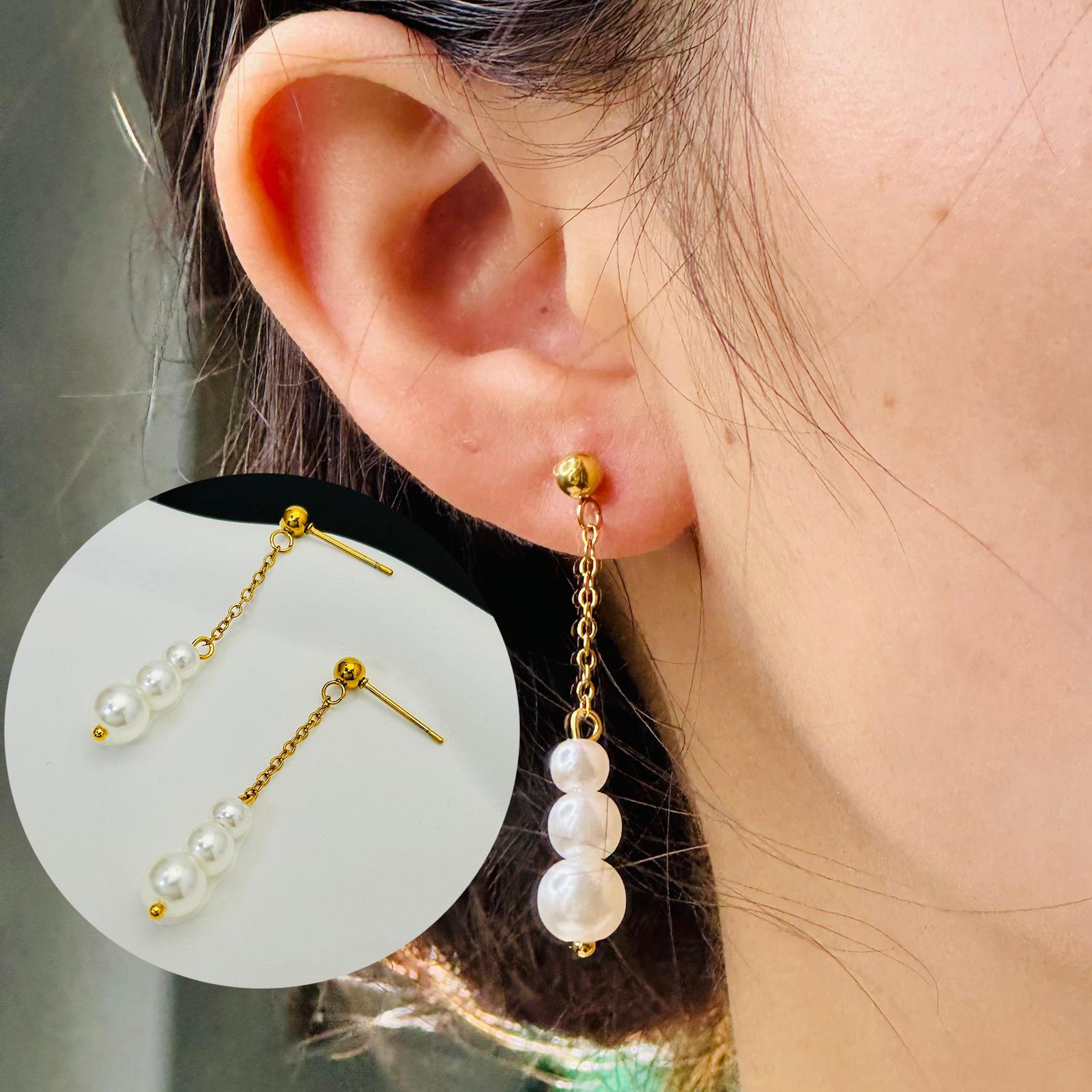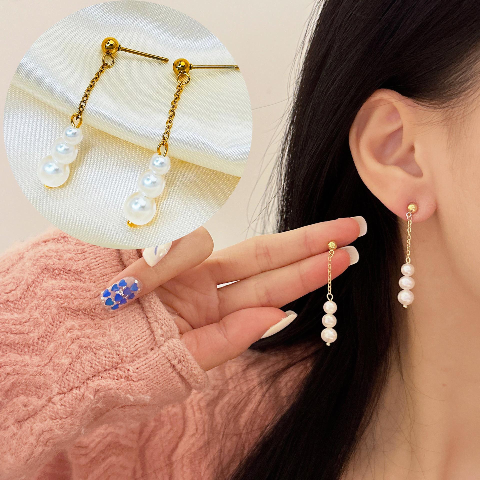 Pendientes franceses de tres perlas para mujer, dorados, resistentes a la decoloración, nuevos y modernos, con diseño de nicho ligero y lujoso, pendientes con temperamento.